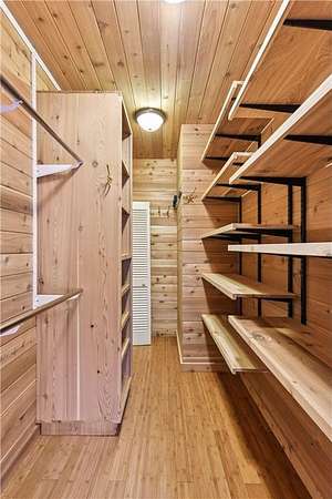 The main level also offers true single-level living, including a welcoming foyer and a luxurious primary suite complete with its own four-season porch, a fireplace, a cedar-lined walk-in closet, a steam shower, and a private deck.