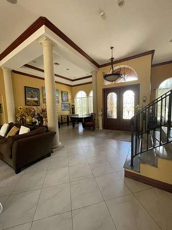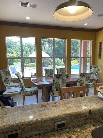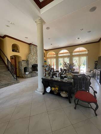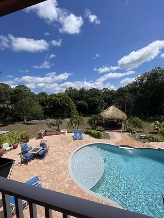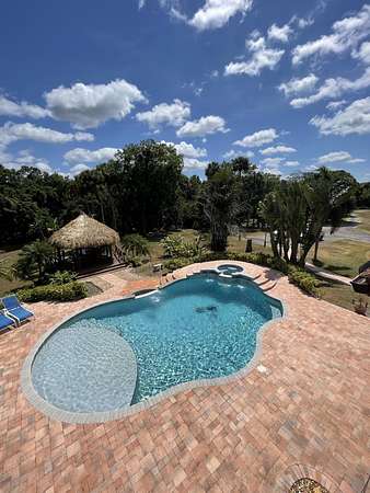 The ten acres and house are listed separately. Buyer is responsible for separating the parcels. Seller does not want any trespassing. Seller needs confirmed showing request prior to driving by. Please schedule on showing time. CALL-LA Anna Lopez~ Buyers agent send offer with POF or pre approval from local bank along with sellers disclosures under documents tab. SEE LISTING FOR TEN ACRES: Seller will consider all offers. Your Own PRIVATE Oasis! Mediterranean Style Built by Owner in 2007, CBS Construction, 3 Bedrooms, 2 Full Bathrooms, 1 Half Bathroom, Family Room, Balcony Facing Pool, 3 Car Garage, Private Pool with Waterfall that Overlooks the 10 Mile Creek. Brand New Tiki Hut, Impact Hurricane Windows. High Ceilings with Real Wood-burning fireplace with 200 Galloon underground propane tank~Last all year! Granite Tops in Kitchen, Bathrooms, and Stairs. Can't Compare This Custom Built Home With Any Other! Thick Rounded Drywall throughout The House. A Central Vacuum System Surround Sound System. Kitchen has Dual Sinks, 2 Ovens ( 1 Gas & 1 Electric ), 6 Gas Burner Stove. Master Suite Up Stairs W/its Own Balcony that Overlooks Pool. NO WATER OR SEWER BILL! Property Comes W/ Water Softner for the Well. Lot Has Enough Space For Your Horses/ House-Friendly acreage/River Access Via Creek or Stream/ Oversized round pool with waterfall feature and catch pool.