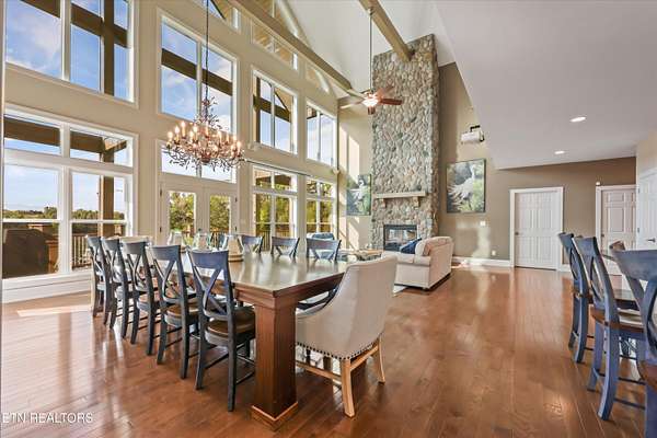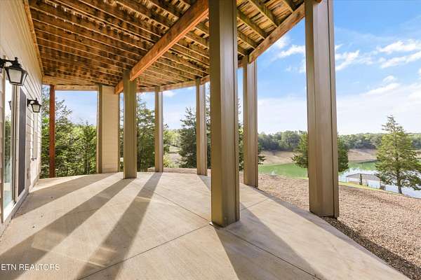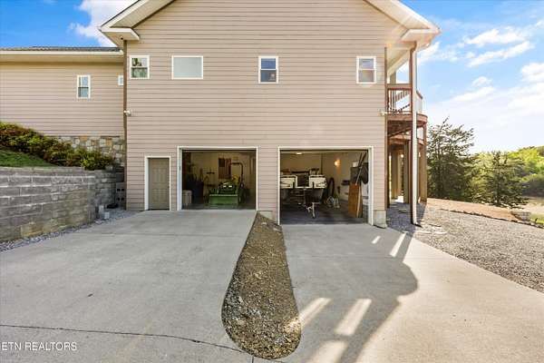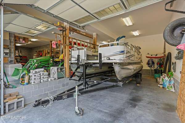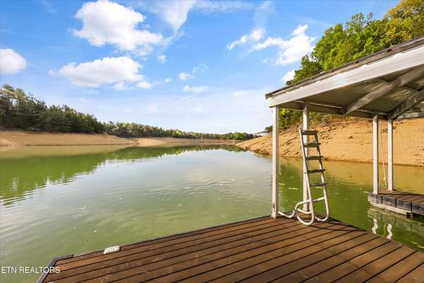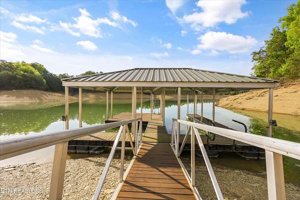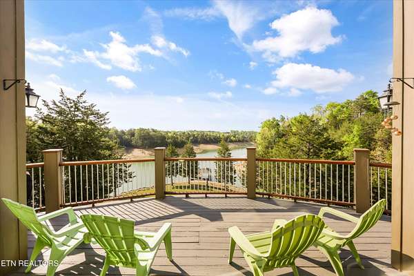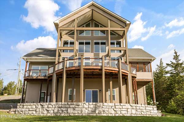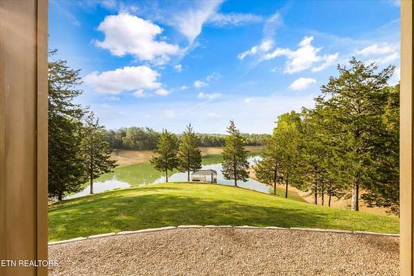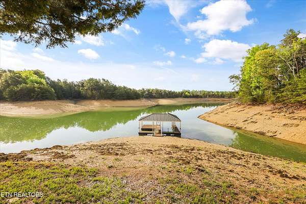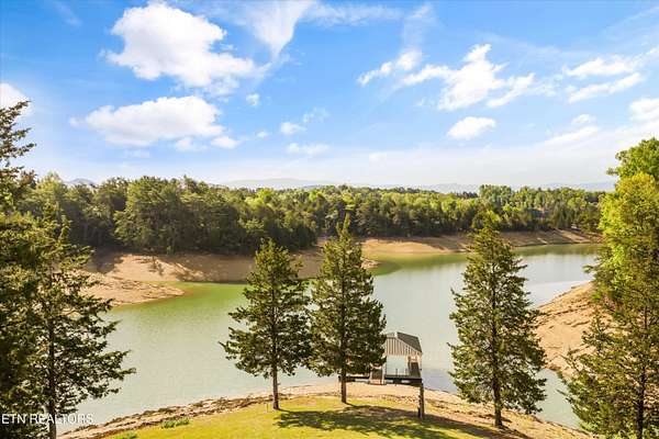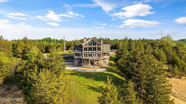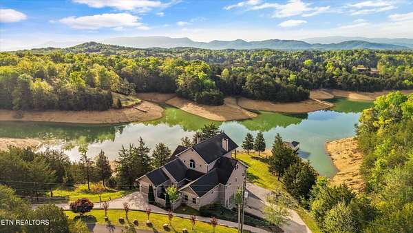Welcome to an exceptional lakefront retreat, where thoughtful design, expansive acreage, and high-end features create a one-of-a-kind property. Nestled on approximately 6 private acres with nearly 900 feet of shoreline, this stunning 4,400+ sq ft estate offers both tranquility and convenience, located less than 20 minutes from town. From the moment you arrive, the home's timeless Hardy plank siding and inviting wraparound porch set the tone. Step inside to a dramatic living space featuring soaring 30-foot ceilings and a wall of expansive windows that serve as the true focal point-framing breathtaking, unobstructed views of the lake and surrounding mountains. A striking stone-to-ceiling fireplace anchors the space, while rich wood flooring creates an open yet warm atmosphere ideal for both entertaining and everyday living. The main-level primary suite is a private sanctuary with direct porch access, spacious his-and-hers closets with custom built-ins, and a luxurious bath featuring tile floors, walk-in tiled shower, soaking tub, and accessibility features. Additional bedrooms offer comfort and privacy, including a secondary ensuite. The chef's kitchen is equipped with an oversized range, warming drawer, wine fridge, dishwasher, microwave, and trash compactor. A screened-in porch extends the living space outdoors, while a three-story dumbwaiter adds convenience. The walk-in pantry provides ample storage. Upstairs, a custom-built library loft overlooks the living area and captures stunning views. This level also includes two expansive bonus rooms and a full bath, offering flexibility for additional bedrooms, office, or recreation space. Built for efficiency, the home features 2x6 exterior walls, enhanced insulation, and an advanced four-zone geothermal HVAC system with three ground heat-sink wells. A desuperheater repurposes waste heat into the tankless water system, contributing to low average utility costs. The property offers incredible flexibility with approximately 2,700 sq. ft of unfinished, fully plumbed space, plus a heated and cooled basement area ideal for recreation or future expansion, including a potential kitchen and bath. Additional features include a custom library, mudroom, central vacuum, and laundry room with an extra sink. The oversized 4-car garage includes separate bays and an extra-deep lower level designed for pontoon boat storage, along with a workshop area featuring a sink and custom workbench. Outdoors, enjoy a TVA-approved covered dock with aluminum and IPE decking, water and electric access, and a lake-fed irrigation system. The property includes a fenced, elevated garden with drip irrigation and an outdoor shower - perfect after a day on the lake. Seasonal water levels typically reach the tree line by mid-May. Additional highlights include a backup generator, a buried propane tank, a water filtration system, and no HOA - just a voluntary $500/year road maintenance fee. This is more than a home - it's a private, thoughtfully engineered lakefront estate offering luxury, efficiency, and unmatched natural beauty. Schedule your private tour today!
