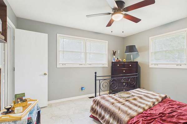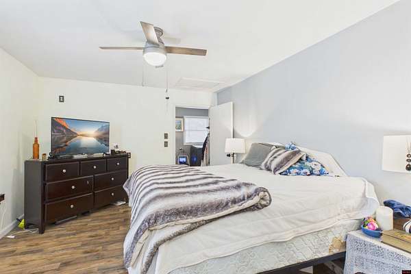 - Ceiling Fan(s), Laminate Floor, Open Floor Plan, Tile Floors, Vinyl Floors, Walk in Closet