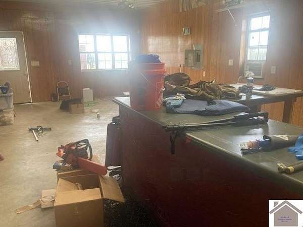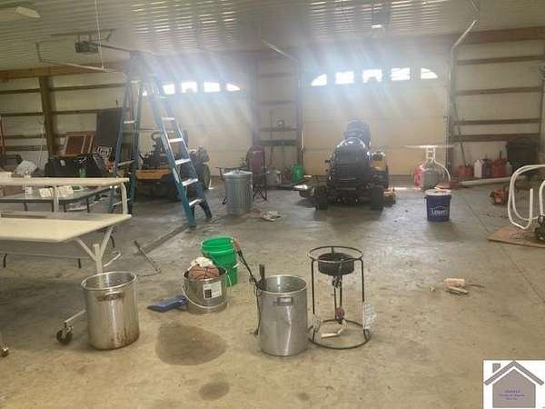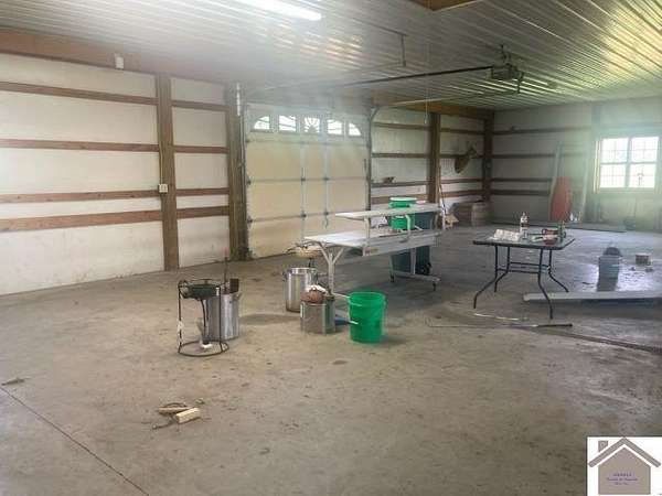Nice Brick home with open floor plan, fireplace with gas logs, gas heat, 500 gal propane tank stays, 3 bedrooms, 2 full baths, utility room with washer and dryer. There's an unfinished walkout basement, a nice sized pantry, Instant gas hot water tank, a big red barn and a 36 x 64 shop building with its own electrical panel and plumbed with water and septic, Seller has WK& T internet, all on 5 beautiful acres, a wonderful gentleman's farm. above ground pool is 27 x 4' deep, newer pump & sand & liner & is winterized, house has fuses but seller has a new electrical panel for the house. This is a short sale and any offers will have to have lender approval.