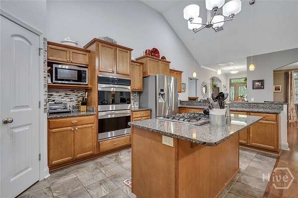 Situated on over 3 acres with a long gated driveway, this stunning property offers a wonderful blend of privacy, character, and room to enjoy the peace of country living. From the moment you pull in, the spacious setting, mature trees, and inviting curb appeal set the tone. Featuring 2 screened-in porches, this home provides plenty of space to unwind, entertain guests, and enjoy the beautiful natural surroundings. Inside, the home showcases a bright and inviting layout with warm wood flooring, elegant archways, and spacious living areas ideal for both everyday living and entertaining. The living room features vaulted ceilings, a cozy fireplace, built-in shelving, and large windows that bring in plenty of natural light. The kitchen impresses with granite countertops, stainless steel appliances, a center island, and double ovens, all opening seamlessly to the breakfast and dining areas. The owner's suite offers a peaceful retreat with a spacious bedroom, a generously sized bathroom, and a walk-in closet. Outside, the property continues to impress with wide-open green space, a peaceful wooded backdrop, and plenty of room to spread out and enjoy the outdoors. Whether you are sipping coffee on one of the screened porches, hosting guests, or simply enjoying the privacy of your acreage, this property offers the kind of lifestyle that feels like home the moment you arrive.