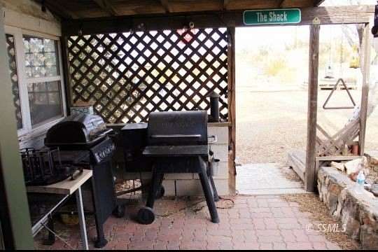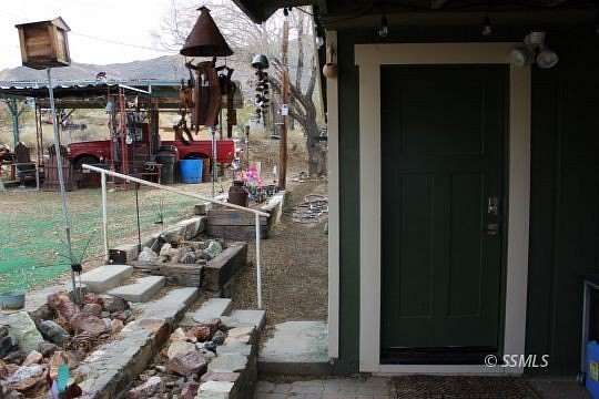 - Corner Lot, Covered Patio, Dog Run, Garden Area, Partial Fenced, Partial Landscape, R V/ Boat Parking, Trees, View of Mountains, Workshop