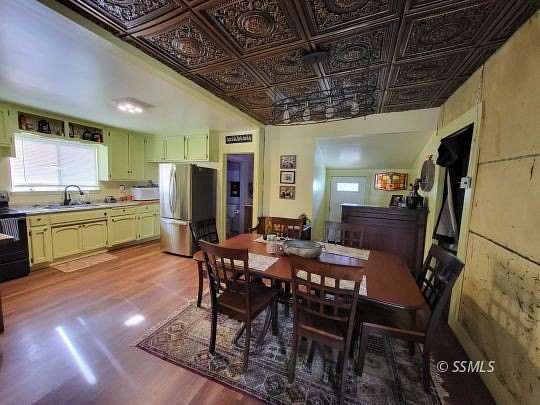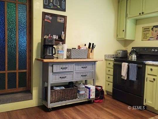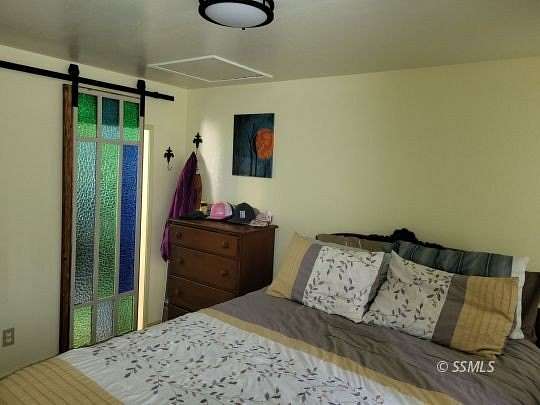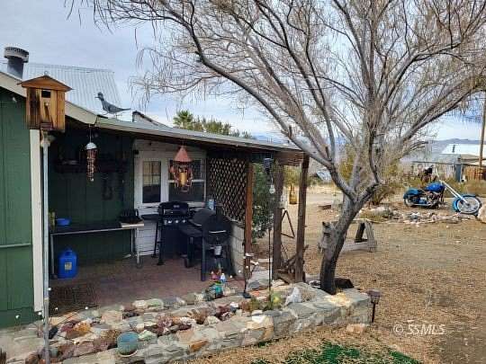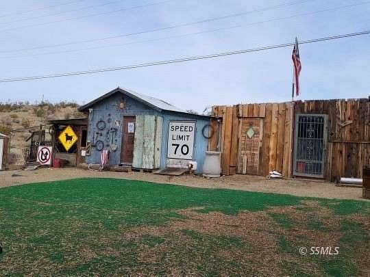 Enjoy the Desert View as you drive through this Historical Gold Mining town of Randsburg to Beck St. Then enter the covered patio area and step inside this Cozy 2-bedroom 2-bathroom Randsburg Dream House. Fall in love with the new wood laminate flooring, newly painted walls, and rustic panel ceilings. The Kitchen offers, new solid surface marble countertops, stainless steel refrigerator, new free-standing range, and tastefully painted cabinets. To the left of the kitchen enter through the single stain glass art barn door, to bdrm 1, with new white sliding closet doors. To the right find bthrm 1, with new vanity, fixtures and mirror, and a walk-in bath to enjoy quiet soothing comfort. Off the dining, is a bar area that leads to the back fenced yard great for pets and enclosed new water heater. Off bdrm 2 is the second bathroom that leads to the laundry room and covered patio. On this 1.51acre lot you will find a historical miner resting fort, out house, a green house, storage/workshop, entertaining room and carport. Enjoy quiet, stary nights off the separate patio. Toy hauler is included, not all yard/wall art is included, may be purchased separately. A rider's PARADISE!