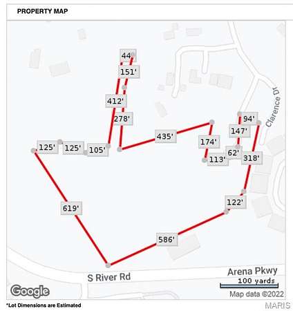 From St. Louis interstate 364 West to Arena Parkway exit in St. Charles. Exit right (towards Family Arena) and property is on the left side. See sign. Access Left on S River Rd, left on Clarence Drive. There is a sign where the property entrance is.