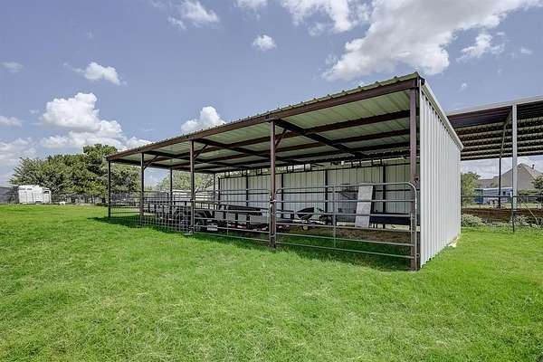 If you have a recreational vehicle, you'll appreciate the dedicated pad with full hookups--large enough to fit a 40-foot RV with ease. Need space for animals? The land is fenced and currently home to goats. There's a sturdy 20 by 20 shelter standing 7 feet tall for them, plus extra covered parking for tractors and trailers, measuring 20 by 40 with 11-foot clearance.