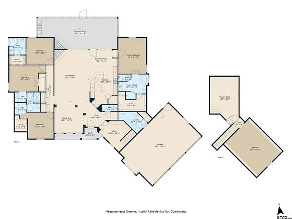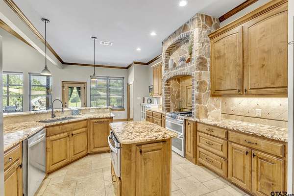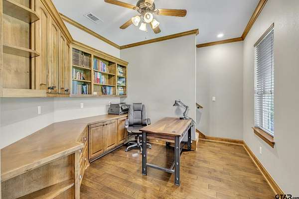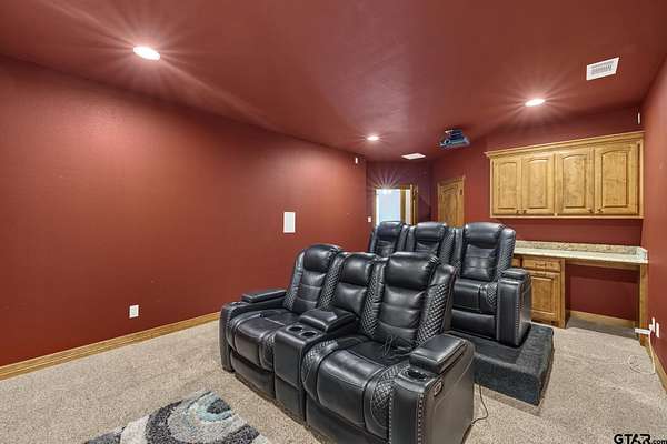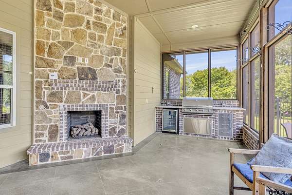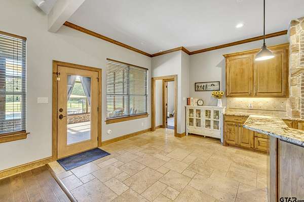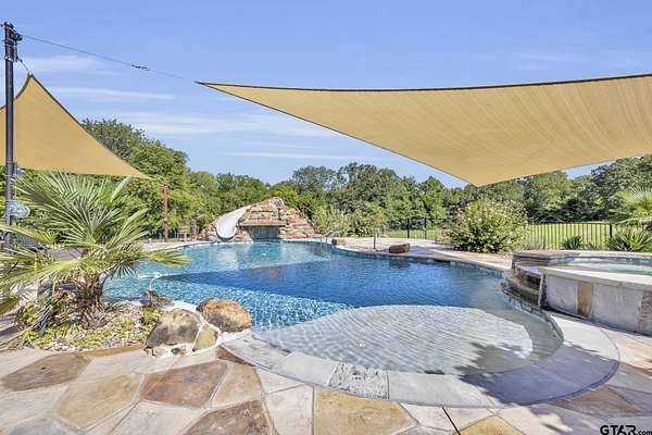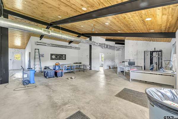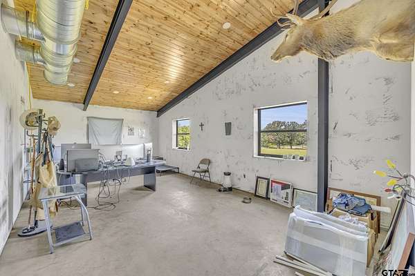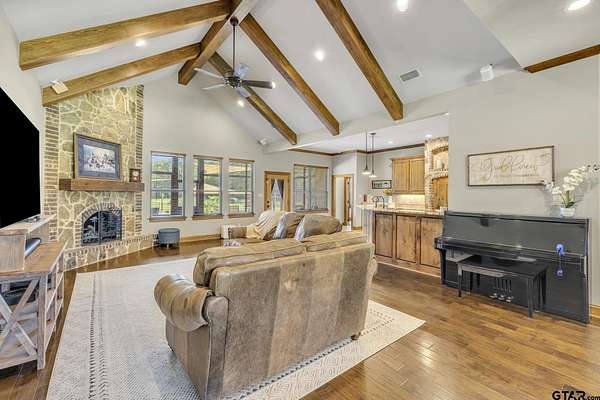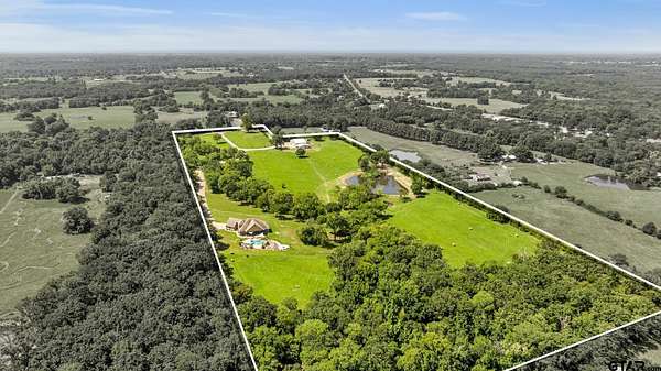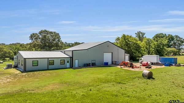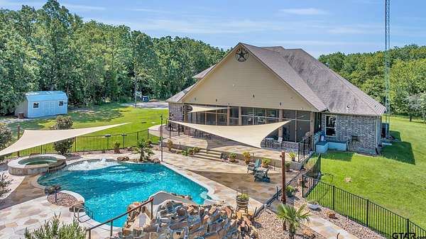 Discover luxury ranch living with unmatched functionality on nearly 29 ag-exempt acres in sought-after Alba-Golden ISD, just minutes from world-class fishing at Lake Fork. Custom built by renowned East Texas builder Lee Knight, this 5-bedroom, 3.5-bath estate spans 3,788 square feet and blends craftsmanship with thoughtful design. Interior features include vaulted ceilings, premium finishes, smart home integrations, a built-in Sonos surround sound system, and an HVAC system enhanced with an ionizer for clean, allergen-reduced air. Step outside to a resort-style setting featuring a heated gunite pool with hot tub, dual stone fireplaces (indoor and outdoor), a screened porch, and a fully equipped outdoor kitchen perfect for year-round entertaining. A garden filled with farm-to-table staples lines the back of the pool area, and a mosquito misting system provides added comfort. The home sits on 28.89 acres of improved hay-producing pasture with a 2-acre Lake Fork leaseback, ideal for both recreation and agricultural use. A standout feature is the fully operational, heated and cooled 4,000+ sq ft commercial aerospace machine shop, offering flexibility for business, creative pursuits, or high-end storage. Additional improvements include three full RV hookups (each with individual power poles), a private storm shelter, stocked pond, cross-fencing, multiple storage buildings, and a large workshop. Designed for efficiency and reliability, the property is equipped with three owned 500-gallon propane tanks, a whole-home generator, aerobic septic system, and a private WiFi tower with Cat 7 wiring for high-speed internet and digital phones. Wrought iron fencing, landscape and security lighting, and surveillance-ready infrastructure ensure both beauty and peace of mind. Whether you're seeking a luxury homestead, a self-sufficient live/work retreat, or an income-producing ranch, this East Texas masterpiece offers it all.