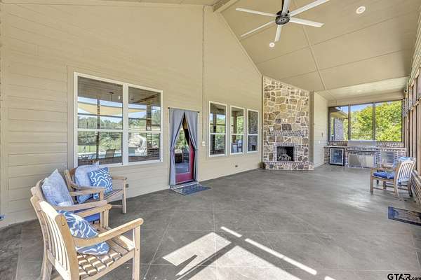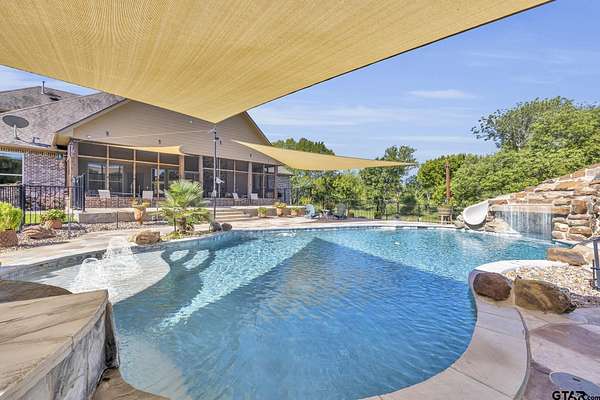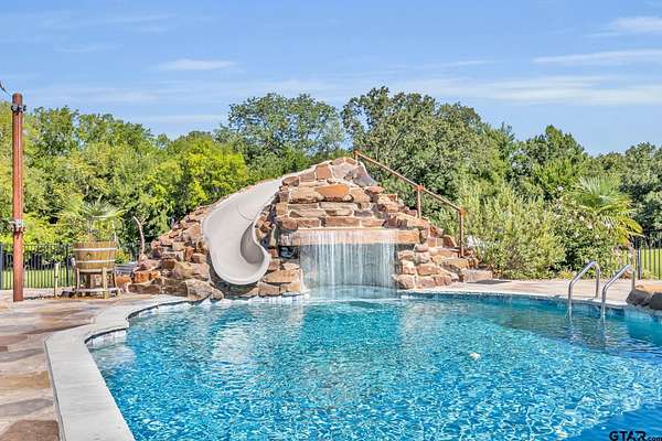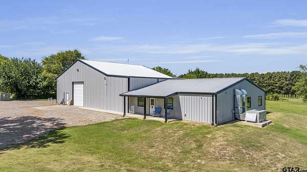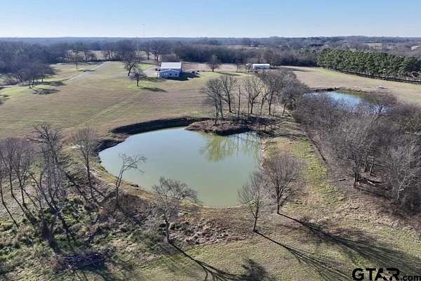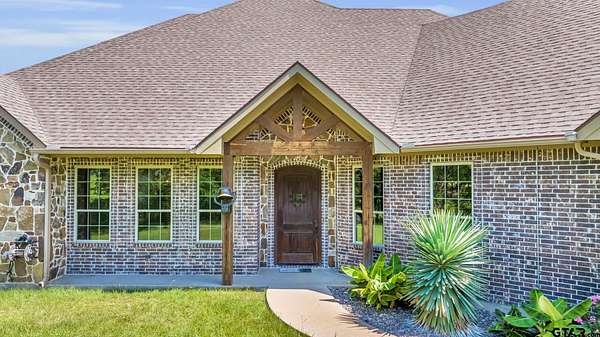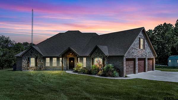 Experience exceptional waterfront ranch living on nearly 29 ag-exempt acres with direct access to Lake Fork puts you just minutes from world-class bass fishing. This one-of-a-kind estate blends luxury, recreation, and functionality. Custom built by renowned East Texas builder Lee Knight, the 5-bedroom, 3.5-bath home spans 3,788 square feet with vaulted ceilings, premium finishes, smart-home features, built-in Sonos surround sound, and an advanced HVAC system with ionizer for cleaner air. Outdoor living is truly resort-style, featuring a heated gunite pool with hot tub, expansive patio, indoor and outdoor stone fireplaces, a screened porch, and a fully equipped outdoor kitchen ideal for year-round entertaining. The property offers a stocked pond and waterfront views, creating a peaceful setting for relaxation or recreation. A garden with farm-to-table staples borders the pool area, enhanced by a mosquito misting system. Beyond the residence, the property stands apart with a 4,000+ square-foot heated and cooled multipurpose shop, currently configured as a commercial-grade aerospace machine shop, offering endless flexibility. Three full RV hookups with individual power poles make hosting easy. Additional features include a storm shelter, storage building, and improved hay pasture. Infrastructure is exceptional with two on-site cell towers for enhanced coverage, a private WiFi tower with Cat 7 wiring, whole-home generator, aerobic septic system, and three owned 500-gallon propane tanks. Wrought iron fencing, landscape lighting, and security-ready infrastructure add beauty and peace of mind. Whether you're seeking a waterfront luxury homestead, live-work compound, or recreational ranch near Lake Fork, this East Texas property delivers rare space, privacy, and versatility. Come see it for yourself and discover the lifestyle you've been dreaming about on Lake Fork.