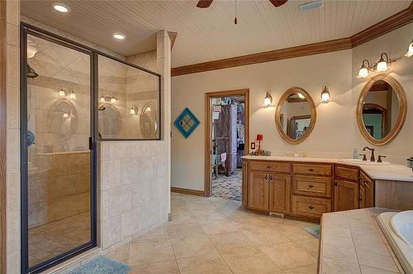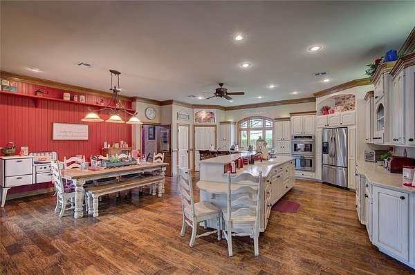 Nestled on 2.28 serene, wooded acres, this stunning 3-bedroom, 2.5 bath custom home offers 3,858 sq. ft. of luxurious living space and an impressive 2000 sq. ft. shop with 3 bays, each with its own garage opener. Enjoy the perfect blend of country living and modern convenience, just minutes from town. Inside you will find exceptional craftsmanship and attention to detail throughout. The chef's kitchen is a showstopper, featuring two Fisher & Paykel dishwasher drawers, double ovens a main sink plus a prep sink, and a beautiful custom picture window. Stained white oak trim accents the room, creating an inviting atmosphere. The living room boasts 10 ft. ceilings, a custom gas-log fireplace, and a surround sound system. Additional highlights include a game room (which could be be converted to a 4th bedroom), an oversized double garage, sprinkler and security systems, impact resistant roof (2024), new gutters and exterior paint (2024), two HVAC units, 2 gas hot water heaters, and pipe and cable fencing around the shop and part of the perimeter. This property has been meticulously maintained, has custom features galore, and offers the peace of the country....a true must-see!