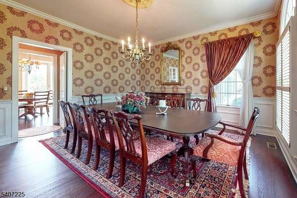 Located in one of Bernard's Township's most prestigious neighborhoods with a Far Hills address, this stunning colonial home has been owned by one owner since construction. Newly refinished hardwood floors, coffered ceilings, and detailed moldings throughout. Upon entry into the foyer, you will be awed by the grand central staircase with balcony overlooking the great room with gas fireplace. To the right of the foyer is the dining room with butler's pantry connecting it to the thoughtfully laid out kitchen with walk-in pantry, stainless steel appliances, and Sub-Zero refrigerator. The center island allows for ease in entertaining. There is an office with built-ins. The living room has the second gas fireplace. Sliding glass doors to the deck, patio, new barbeque area, and gunite pool allowing more entertaining options. Upstairs in the primary bedroom, the full bathroom has double sinks, jetted tub, and separate shower. There are 4 guest bedrooms, two offer attached full baths. The laundry/mud room is conveniently located near the 3 car garage. Also on this level are two powder rooms. The finished basement features a media room, exercise room, desk, and temperature controlled wine cellar. Recent updates include all new bathroom fixtures. New pool pump, cover, filter, and salt system. All new sprinkler valves. Enjoy all that Far Hills has to offer: equestrian facilities, top-rated schools, nationally ranked golf course, welcoming parks, easy access to NJ transit, and highways.