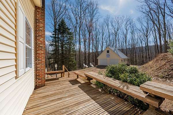 This charming split-foyer cottage, nestled in the foothills of Southwest Virginia, offers the perfect combination of comfort and privacy. As you step inside, you'll be greeted by a warm and inviting atmosphere. The home features 3 bedrooms and 3 baths, all conveniently located on the main level, with approx. 2870 total finished square feet. Additionally, there is an approx. 230-square-foot unfinished portion of the basement for extra storage. The exterior of the home includes durable vinyl siding and brick, complemented by a metal roof and leaf filter gutter guards. A heat pump provides efficient heating and cooling, and the large open deck and fire pit area offers ideal spaces for outdoor relaxation. There's also a large storage building and a 2-car detached garage with an exterior side door, plus a large unfinished loft above, perfect for additional storage, a mancave, or workshop. Interior highlights include a mix of wood and tile flooring, as well as carpeting in certain areas, a water softener, and security systems. Two fireplaces in the basement-one propane fireplace in the large family room and another electric fireplace in the sitting room-add extra warmth and charm. The laundry is conveniently located in the sitting room. A lovely enclosed porch off the dining room provides an ideal spot to enjoy the outdoors and your morning coffee. The primary bedroom is simply amazing and has a jet tub, vanity, and gigantic walk-in closet! Located just minutes from Tazewell, VA, this property offers easy access to local restaurants and boutique shopping. It's also less than an hour from Winterplace Ski Resort, 15 minutes from historic Burkes Garden where you have access to the Appalachian Trail, and approximately 3 hours from Pigeon Forge, TN. This home sits on a secluded wooded lot above the street below and has been meticulously maintained and is ready for any type of loan. Lots of privacy and lots to see and do nearby!