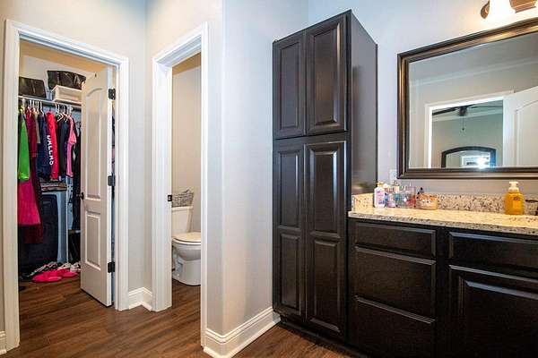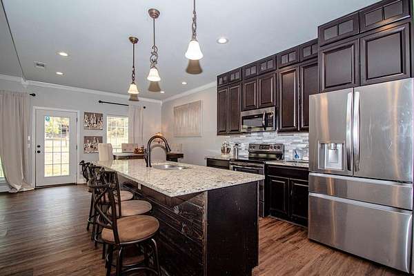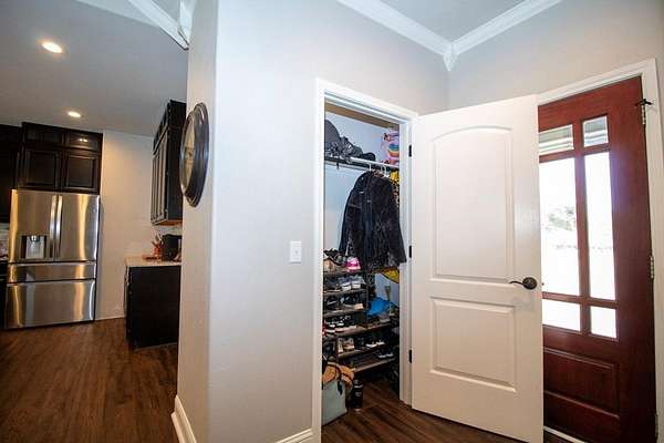 Set on just over two acres in the Tejas Shores community near Houston County Lake, this single-story home offers a comfortable blend of space and everyday ease. With 1,980 sf, four bedrooms and two bathrooms, the layout is practical and welcoming without feeling crowded. The family room is anchored by cathedral ceilings and a stone fireplace that give the space character and warmth. The kitchen is well equipped with custom cabinetry, stainless appliances, granite countertops, and a large pantry with room for an extra freezer. A generous dining area keeps everyone connected, whether it's weeknight dinners or a full table on the holidays. Outside, the property is ready to be used. A barn and fenced area work well for a horse or small livestock, and there's plenty of room for gardening or simply enjoying the open surroundings. It's also an easy walk to the neighborhood boat launch, along with access to a shared dock, playground, and picnic area along the lake.