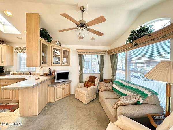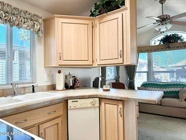 This 2005 DESERT OASIS IS perfectly situated NORTH FACING W/ STUNNING SUPERSTITION MOUNTAIN VIEWS! OVERSIZED outdoor deck w/ LARGE under deck storage drawers is ideal for taking in the BEAUTIFUL VIEWS & PERFECT for relaxing the day away! FABULOUS RESORT LOCATION! EXPANSIVE CARPORT & SIZABLE STORAGE SHED! As you enter this LOVELY home you will find a desirable floor plan w/ a U-SHAPED kitchen boasting WHITE APPLIANCES W/ A FULL SIZE SMOOTH STOP STOVE, DISHWASHER MICROWAVE & AN ABUNDANCE of counter space. Quality cabinetry & plenty of it. DELIGHTFUL dining nook adjacent to kitchen with INCREDIBLE MOUNTAIN views while you enjoy your meals! LARGE DUAL PANE WINDOWS & A FABULOUS FRONT LIVING AREA. Perfect for entertaining and having guests come visit. The Cozy bedroom offers a built in dresser w tons of drawers & a LARGE MIRRORED CLOSET. You won't run out of storage space! Wait until you see the SPACIOUS bathroom with SIZABLE walk in shower & plenty of dressing room! FABULOUS BUILT IN DESK AREA in hall is perfect for hobbies or a home office area. This home has so much to offer! WELL LOVED, MOVE IN READY & MAKES A GREAT SUNNY ESCAPE! The outdoor shed is great for even more storage space for all your tools & extras! COME TAKE ALOOK, OWN THE LAND, OWN THE FUN in this DESIRABLE 55+ RESORT!