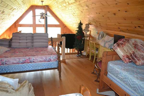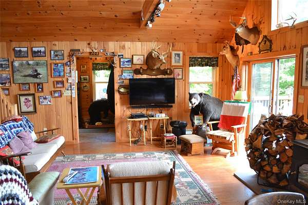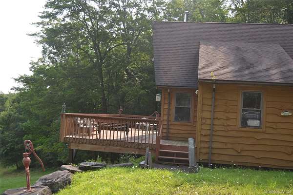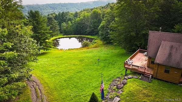 Secluded Catskill Mountain Retreat on 105 Acres. Escape to your own private paradise in the Catskills! This turn-key 1,100 sq. ft. chalet, built in 2005, sits on 105.8 acres of pristine woodland with breathtaking long-range mountain and Pepacton Reservoir views. The open-concept floor plan features vaulted ceilings, tongue-and-groove pine, and a wood-burning stove for cozy mountain living. Two sliding glass doors lead to a spacious 22' x 32' deck, perfect for soaking in the panoramic scenery. Inside, you'll find a comfortable bedroom (13x12), an 11x17 loft, and a large bathroom with a shower and stackable washer/dryer. The fully equipped kitchen includes a gas stove, refrigerator, built-in microwave, and plenty of storage. Electric baseboard heat supplements the wood stove for year-round comfort. The live-edge hemlock siding adds a classic rustic touch to the home's exterior. Outdoors, enjoy a deep freshwater pond, miles of private trails, and abundant wildlife-including deer, bear, and fox. The property borders thousands of acres of State Forest, offering unmatched privacy and endless opportunities for hiking, hunting, and exploration. Located just 20 minutes from Roscoe or Downsville, NY, and about 2.5 hours from NYC, this peaceful retreat offers the perfect balance of seclusion and convenience. Don't miss this rare opportunity to own a Catskill mountain getaway where luxury and nature meet.
