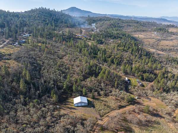 Endless potential with this private 60' x 40' (2,400 sq. ft.) shop on 5.26 acres, perfectly positioned to capture sweeping views over East Antelope Road and Eagle Point. The building features 15' eave walls, three 12' bay doors, one 8' bay door, and two man doors-ideal for equipment, storage, or future conversion into a barndominium. The property is fully equipped with standard septic, power connected, and a high-producing well, making it ready for your dream home. Zoning allows for easy homesite approval. Additional highlights include full RV hookups, a quiet setting near the end of a private drive, and well-maintained access off Wren Ridge with a road maintenance agreement in place. A rare opportunity to own this peaceful acreage with infrastructure already in place and truly stunning views.