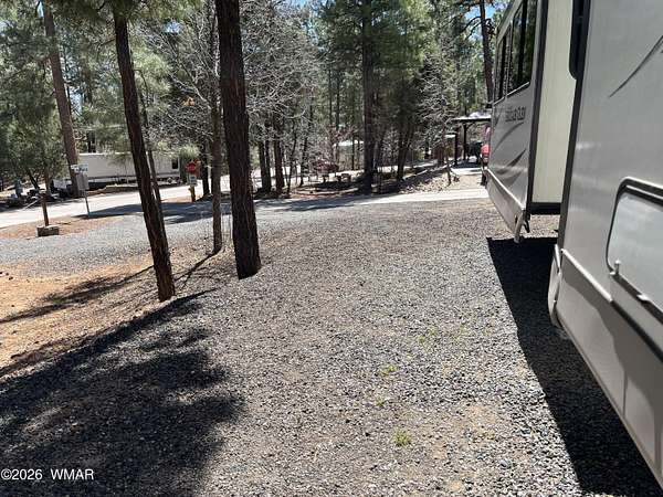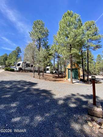 Quit paying rent! Own your own RV spot to escape the AZ summer heat! Bring your own RV, buy the existing RV for an addl $32K or purchase a park model and have it placed on the level parking pad with RV hookups. A storage shed is included for your outdoor living supplies. Tailor the lot to fit your outdoor needs with ample parking space and tall pines to enjoy cool White Mountain air. HOA includes water, trash, & sewer. Clubhouse, picnic areas and walking trails are yours to enjoy as well. Short drive to dining, shopping, trails, lakes, Sunrise Ski Resort & hospital. Schedule your private showing today.