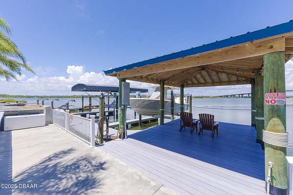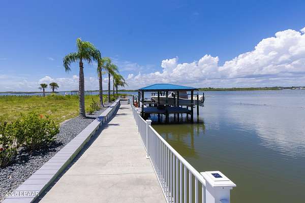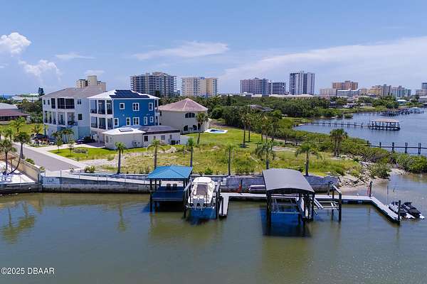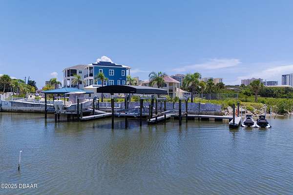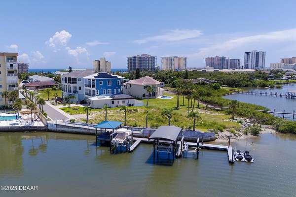 Build the beachside home with boat dock access that you have been dreaming of! Perfectly situated along the banks of the Halifax River, this oversized lot in the gated community, Anglers Cove, is ready for your inspiration. Build a custom 3-story residence with beach and intracoastal views from sunrise to sunset, and enjoy a convenient location that is just minutes to the mainland by car, and a short and relaxing boat ride to inlet access. Property includes a boat slip with a 15x35 Shore Station covered canopy that retracts incase of storms and a 13,000 lb. high speed lift. Inquire for survey and architectural plans for a home that includes an RV garage, a water view balcony, and 6,000+ square feet! Daily boating, fishing, and easy walks to the beach are waiting - don't miss out!