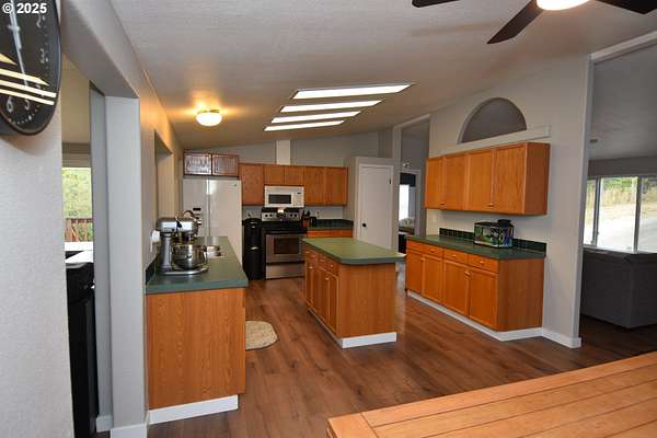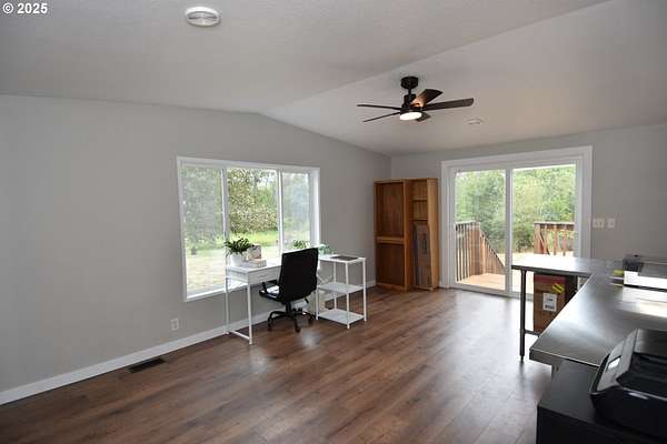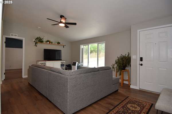 Great home conveniently located to I-5. Set atop two mostly level acres close in to town. Excellent open floor plan with vaulted ceilings throughout. The highlight of this home is the primary ensuite boasting an amazing walk-in closet and bathroom that includes a separate shower as well as a corner soaking tub to wash all your cares away. The other two bedrooms are also much larger than you will find in todays new construction homes. Each one of these bedrooms also offers walk-in closets as well. The galley style kitchen seems less cramped thanks to the island that splits it down the middle. As if there wasn't enough storage space with the available kitchen cabinetry, there is also a pantry closet. Oh and the dishwasher is only three months old. The laundry room is centrally located between the two bedrooms and the kitchen for maximum convenience. Outside, the two year old roof offers years of protection from the elements for not only the house but the garage as well. The oversized (1380 square foot) shop/garage offers a multitude of options should you want to do more than just park your cars inside. The best part of this two acre property is it's southerly facing direction. Perfect for all your outdoor desires, whether they be gardening, a swimming pool, playsets, sports court or all the above. If I had to describe this home in one word it would be "storagebecause there's so much of it, oh! and "floorplan" because this home is so well designed...ok, I know that's two words. Come see it today.