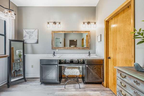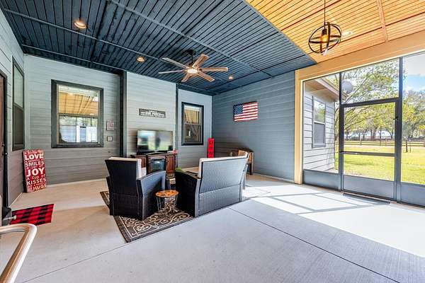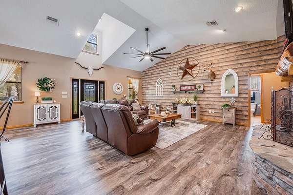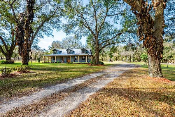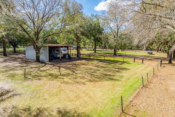 Almost SEVEN PRIVATE ACRES | A CUSTOM BUILT HOME | And a property designed for the way you actually want to live! Welcome to this rare opportunity in charming Eustis, with scenic Lake Eldorado as the picturesque backdrop to this quiet community. Set on 6.91 high and dry acres and ZONED AGRICULTURAL, this beautiful 3 bedroom, 2.5 bath home sits perfectly centered on the property, surrounded by mature trees, fenced pastures with run-ins for cows, and wide-open skies. Bring your animals, your RV, your hobbies, and your vision - there is room for all of it here. And best of all... NO HOA! Major updates and features include EXTERIOR PAINT (2021), METAL ROOF, TANKLESS WATER HEATER, maintained well and septic systems, an underground 150-gallon Amerigas propane tank, gas range, gas dryer, gas hot water heater, 2 A/C UNITS (4-ton for the main living areas and 2-ton dedicated to the primary suite), 11-zone irrigation system with three clocks, and a commercial-grade electric ENTRY GATE with remotes and keypad access. The 32x40 pole barn with a 16' lean-to offers incredible flexibility - complete with a 16x16 concrete-floored workshop or tack room equipped with its own bathroom, plus an additional 16x16 concrete slab under open air. A 50-amp RV HOOKUP is positioned under the pole barn for easy access, and an 8x16 tractor barn sits in the back pasture. The lean-to can even be converted into horse stalls, making this a true working property with lifestyle appeal! Inside, the home balances warmth and functionality with an OPEN CONCEPT main living area, vaulted ceilings, and a charming stacked stone WOOD BURNING FIREPLACE with an oversized hearth. Natural light pours into every corner, creating inviting, airy spaces perfect for everyday living or entertaining. The well-appointed kitchen offers gas cooking, thoughtful storage, and seamless flow into the dining and living areas. The spacious PRIMARY SUITE is a retreat of its own, featuring French doors to the covered porch and TWO WALK-IN CLOSETS - one in the bedroom, and one in your private en-suite bath. MULTIPLE OUTDOOR SPACES - including a built-in FIRE PIT and screened lanai - extend your entertaining space and invite you to enjoy Florida living year-round. And then there is the true standout feature - an actual reinforced safe room. Built with 4-inch poured concrete walls and ceiling, this secure space doubles as a closet and features a must see bank-style door hidden behind a pocket door. It locks from the inside, opens inward, includes a small window, remains under A/C, and has a dedicated fresh-air vent for added safety and peace of mind. Beautiful, functional, and full of character, this property offers the rare combination of acreage, agricultural zoning, modern comforts, and thoughtful upgrades - all in a quiet, well-kept area just minutes from shopping, dining, schools, nearby lakes, and outdoor recreation. Privacy. Freedom. Versatility. Space to breathe. If you have been waiting for a property that truly has it all - this is the one. Call today to schedule a tour and fall in love with your new HOME SWEET HOME! Seller may consider buyer concessions if made in an offer