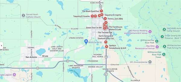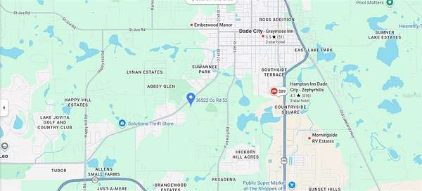 Investment Opportunity | 36520 County Road 52, Dade City, FL. This 5.03-acre property is ideally positioned along County Road 52 in one of Pasco County’s fastest-growing corridors, offering convenient connectivity to the Tampa area. Surrounded by expanding residential developments and ongoing infrastructure improvements, the site presents excellent investment or future development potential. The property totals approximately 219,107 square feet and is zoned DC-100. It has access to water and sewer services through Dade City Utilities and is located in Flood Zone X. There are currently two existing residential structures on the property. With direct frontage on County Road 52 and utility access in place, the site is well-suited for a variety of potential uses, including retail, office, mixed-use, or other commercial development, subject to apInvestment Opportunity | 36520 County Road 52, Dade City | Growing Pasco County Area This 5.03-acre property on County Road 52 is in a fast-growing corridor connecting to Tampa. With new homes and infrastructure expanding nearby, it offers strong potential for investment or future development. The property includes 219,107 square feet, is zoned DC-100, and has water and sewer through Dade City Utilities. It is in Flood Zone X and has two existing structures. With direct frontage on County Road 52 and access to utilities, the site is ideal for retail, office, mixed-use, or other commercial opportunities, subject to approval. Positioned in a high-growth area, this property is a rare chance to secure land before values increase. This property has three different addresses as follows. This parcel has three addresses as follows: 36520 COUNTY ROAD 52, DADE CITY, FL 33525, 36522 COUNTY ROAD 52, DADE CITY, FL 33525, and 36526 COUNTY ROAD 52, DADE CITY, FL 33525. Addresses 36520 and 36522 are addresses for the house on the property. 36520 is roughly 1016 sq ft, and House no. 35622 is roughly 1638 sq ft. All property is under the same parcel. The property owner is selling this property as a single open piece of land and assumes that both houses will be demolished and can be redeveloped. Propery owner does not warrant