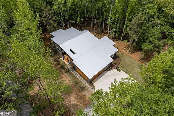 This four-year-old custom midcentury modern home, thoughtfully designed by E&E Architects, blends clean lines, open spaces, and a seamless connection to the surrounding landscape. This single-level home offers 4 bedrooms + 3.5 baths and sits on 3.6 acres and features a bright, open floor plan that flows effortlessly-ideal for both everyday living and entertaining. At the heart of the home is a spacious chef's kitchen featuring stainless steel appliances, generous counter space, and plenty of room to gather. The vaulted ceiling in the living room adds to the open, airy feel and ties the space together beautifully. The primary suite provides a spa-like retreat with a tiled walk-in shower, double vanities, and an oversized walk-in closet. On the opposite side of the home are three additional bedrooms, two connected by a Jack-and-Jill bath and one with its own private ensuite. Step outside to a large back deck overlooking peaceful woods, with a gentle path leading down to Cedar Creek, perfect for relaxing, entertaining, or simply enjoying the natural setting. The property spans two lots totaling 3.6 acres, offering privacy and room to roam. This almost-new home combines modern design, natural beauty, and everyday functionality into one exceptional property. Showings start Saturday, April 4th.