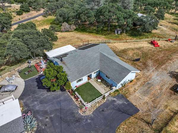 Sustainable Living on Nearly 20 Acres in Diamond XX - 3653 Chuckwagon Dr, Copperopolis. Discover peace, privacy, and the potential for a more self-sufficient lifestyle at 3653 Chuckwagon Drive, located in the heart of Diamond XX Ranch Estates. Set on 19.91 acres of gently rolling land, this property offers a rare opportunity to live closer to nature while staying connected with modern comforts and eco-conscious systems. The 2,484 sq ft home features 3 bedrooms, 2 bathrooms, and a versatile bonus room off the kitchen, ideal for a home office, creative space, or mudroom. Inside, enjoy cozy winters by the wood-burning fireplace, year-round comfort with forced air heating and a mini split system, and clean, filtered water from your own water filtration system. Leased solar panels help reduce your carbon footprint while keeping utility costs down, making this property an excellent candidate for those seeking a step toward off-grid or sustainable living. The outdoor setup includes a barn with water and power, perfect for gardening, livestock, or workshop space, plus a detached 3-car garage for storage, vehicles, or gear. The land is fully fenced and cross-fenced, offering plenty of room to raise animals, grow food, or simply enjoy the open space. Surrounded by the natural beauty of Flowers Lake, Littlejohns Creek, and Clover Creek, the property sits within a region rich in water resources and wildlife. Just south of Highway 4, you'll also find Lake Tulloch and the Stanislaus River, adding recreation and scenic variety to your everyday life. On a clear day, take in panoramic views that stretch all the way to Yosemite, and appreciate the calm and quiet that only a large piece of land can provide. Yet despite its rural feel, the location offers convenient access to both the Sierra Foothills and Central Valley, making it easy to stay connected when needed. If you're dreaming of a simpler, more sustainable way of life without sacrificing space, comfort, or convenience, 3653 Chuckwagon Dr is ready to welcome you home.
