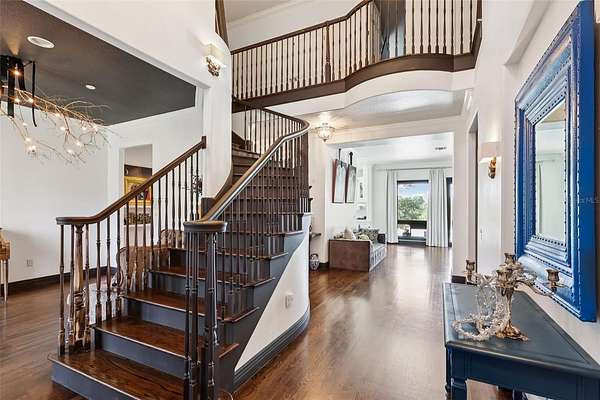 Looking for a Private Sanctuary nestled on just over 10 gentle rolling acres… Look no Further! This Private Luxury Pool Home includes 4 Bedrooms (with separate office space easily used for 5th Bedroom) plus 3.5 Baths. The two-story traditional custom designed home offers unique features plus an expansive Saltwater Pool with Spacious Travertine Deck, BBQ area plus Portico Open to Front Patio and Rear Deck. This unincorporated property is conveniently located near the impressive Black Bear Golf Community however, NO HOA. As you enter, you will find your eyes are drawn to the exquisite Chandlier which adorns the foyer as well as the Circular Stairs, enhanced with Solid Wood Balusters leading to the 2nd floor. The 2nd Guestroom, just off the foyer, is currently used as the family TV Room. The extra wide 2nd floor Landing not only leads to the Master Suite and Upstairs Guestrooms, but it also includes a two-story Dumb Waiter plus convenient Laundry Shute to the downstairs spacious Utility Room. The Light and Bright Open “Eat In” Kitchen includes Dramatic Windows with amazing views, Beautiful Solid Wood Cabinetry with Granite Countertops, Built in Desk/Buffet plus Large Walk in Pantry. The Kitchen is conveniently open to the Great Room with double French doors which leads to the Pool. The ½ Bath just inside the back door allows easy access as Pool Bath. A 300 gal buried propane tank supplies the kitchen Range and Tankless Water Heater (which could easily be converted back to electric) The Master Suite is located on the 2nd level and includes beautiful Ensuite Bath with Corner Soaking Tub plus Walk in Shower and two Walk in Closets. Double French doors open to a classic Balcony to relax and enjoy the morning gentle breezes or have a cocktail in the evening. The Double-Sided Gas Fireplace offers warmth and cozy atmosphere and backs to the additional office space with built in shelving. Upstairs, the two Additional Guest Bedrooms share a spacious Jack & Jill bath plus one has a unique study/office/craft area. This Luxurious Home and Rolling Landscape can accommodate all Your Dreams…maybe a Quiet Oasis, Equestrian or Cattle Ranchland or maybe a Nursery. The irrigated Garden Area located near the Solar Field awaits your updates and design. You will notice this property also has a 3-car garage and additional parking pad to accommodate additional 3-4 vehicles plus a large Barn/Equipment Shed. The Roof 2014 with repair in 6/22'; Pool and Deck installed 10/17' Close to Mount Dora, Eustis and Tavares Shopping, Entertainment, Restaurants and of course the Chain of Lakes for all the Water Sports and Recreation. Easy Commute to Orlando International or Sanford International Airports - Don't Miss Seeing this Beauty!
