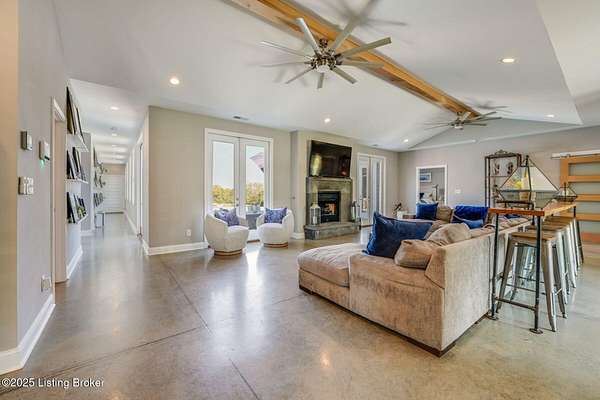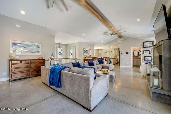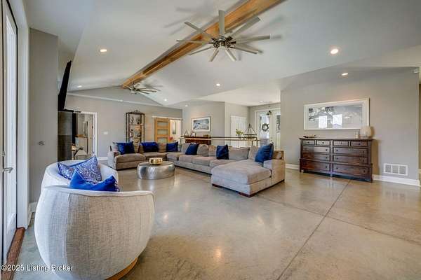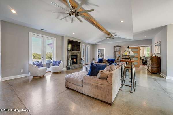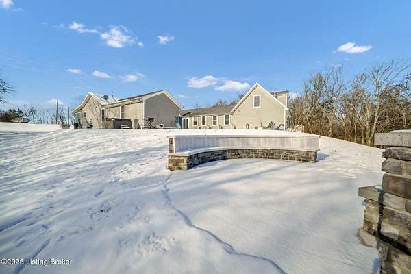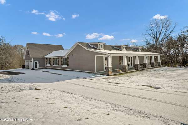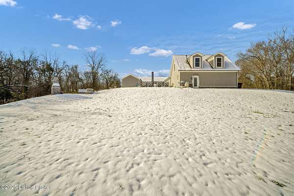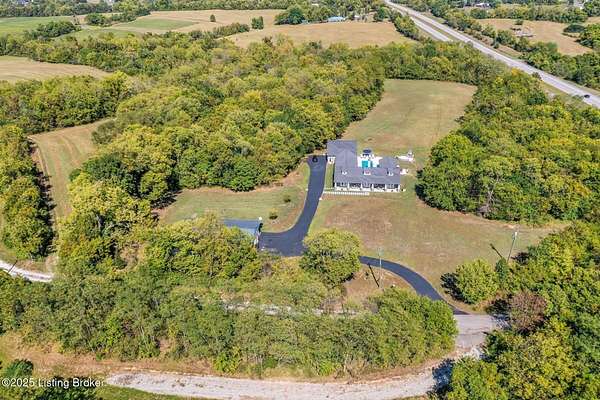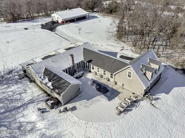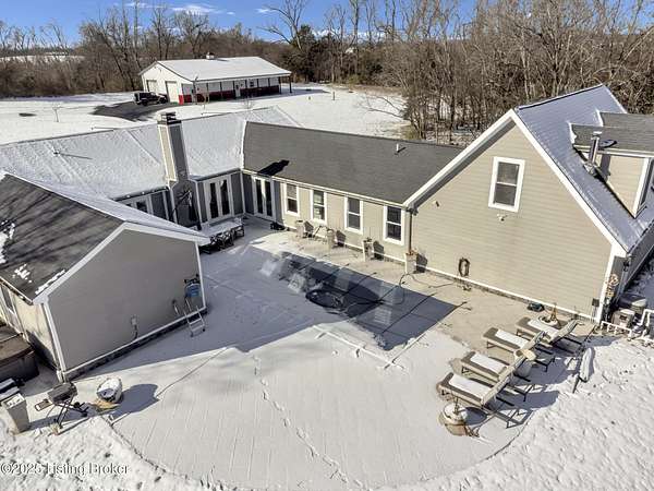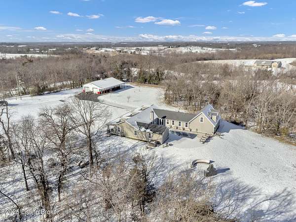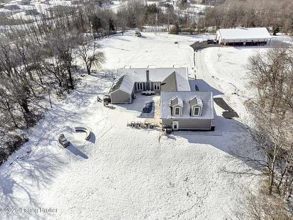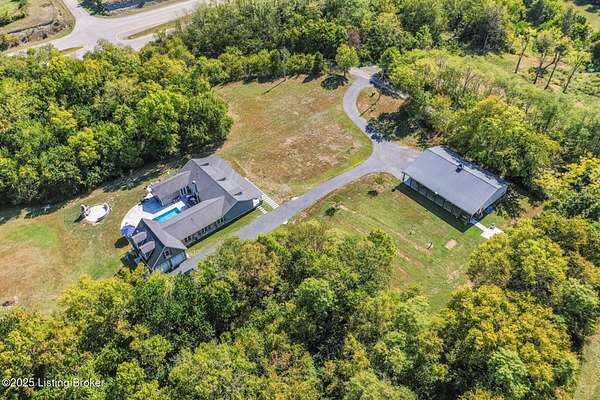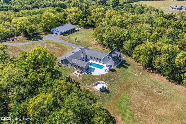 Escape to 13.49 private acres with two unique homes in Taylorsville. This property is conveniently located just 2.5 miles from Taylorsville Lake Marina, 17 miles to the Gene Snyder Freeway, and 18 miles to The Outlet Shoppes of the Bluegrass. The main residence was thoughtfully designed with extensive decorative concrete details and a floor plan that wraps around the heated in-ground salt water pool. The home is flooded with natural light from walls of windows. Inside you'll find 4 bedrooms, 3 full baths, and a spacious bonus room above the garage. A second home on the property offers 2 bedrooms, 2 baths, and a 2-car garage, ideal for guests, family, or income potential.