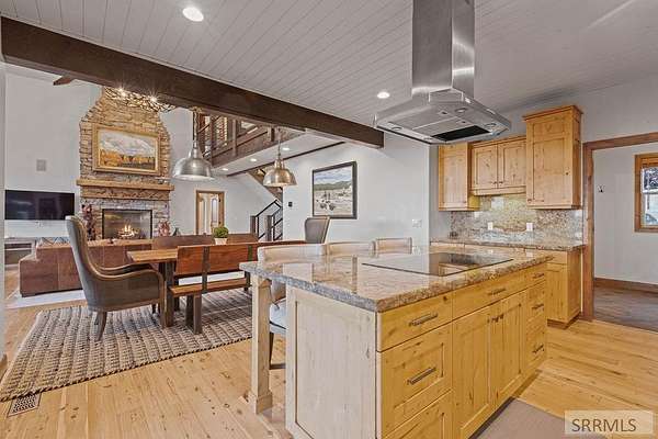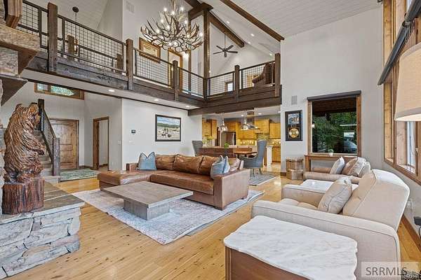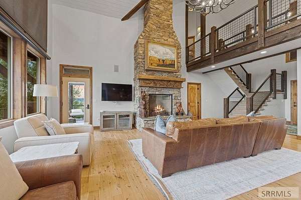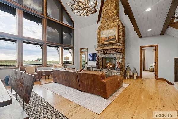 Experience the majesty of the Henry's Fork at Stonefly Lodge, a remarkable riverfront sanctuary on a private 2.2-acre lot. This exceptional 6-bedroom, 5-bathroom retreat, spanning over 4,300 sq. ft., was intentionally designed to host unforgettable moments. At the heart of the cabin, the great room features soaring wood ceilings, rich natural finishes, and a wall of windows that frame stunning vistas of the Henry's Fork, bringing the riverfront setting inside. The open dining area flows into a kitchen built for entertaining, featuring knotty alder cabinetry, granite countertops, and a large center island with a quality cooktop. Cozy up in one of the multiple living areas, each a perfect space for a quiet evening or a lively reunion with family and friends. A tranquil escape awaits in the spacious bedrooms, each designed with warm, rustic charm to ensure comfort for all your guests. Outside, the adventure continues with a private hot tub, a crackling firepit by the river, and the thrill of having world-class fly fishing just steps from your door. This is more than a home, it's a legacy property where a love for the outdoors is woven into every detail. Rustic elegance meets modern comfort on this unmatched riverfront retreat.