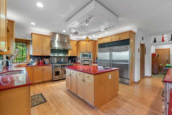 - 2 or More Fireplaces, Gas Fireplace, Kitchen Island, Pantry, Simulated Wood Floors, Skylight, Walk-In Closet(s), Wet Bar, Wood Floors