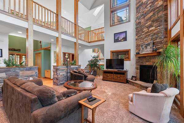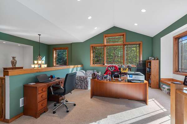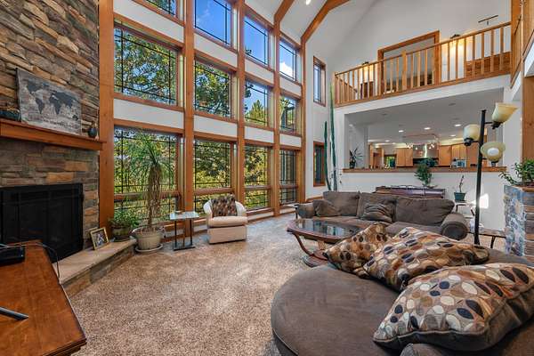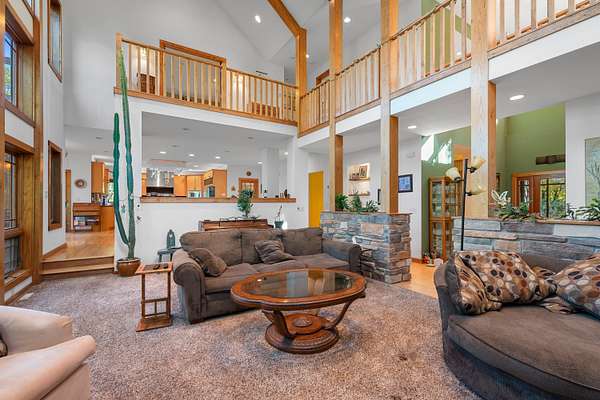 Experience luxury living with soaring ceilings and high end finishes throughout this stunning home. The chef's kiss kitchen is a true centerpiece, blending style and function for everyday living or entertaining. The finished lower level offers a spacious rec room, movie theatre, two bedrooms, full bath, and plenty of storage. Upstairs, enjoy an open office or den space, a serene master suite with a massive walk in closet, and an additional bedroom. Expansive windows capture views for miles, creating the atmosphere of a private mountain retreat while still being close to everything you need. This home perfectly combines elegance, comfort, and breathtaking scenery. Slinger Schools is a plus!
