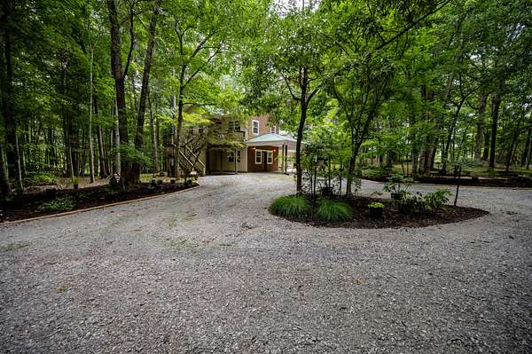 - Attached, Circular Driveway, Garage Faces Front, Gravel