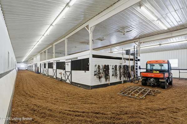 54 Stall Gaited & Heated Equine Training Facility. Beautiful Tree Lined Entrance with Irrigation System. Large Cozy 1 Bedroom Barn Apartment with Stone Fireplace, Full Kitchen, Laundry, Office and Full Updated Bathroom. Breeding Lab. 5000 Bale Hay Loft. 3 Tack Rooms. 2 Heated Indoor Riding Arenas with new footing and watering system. Storm Shelter with Escape Hatch. Large Garage Door with ample storage area for shavings. All stalls have new mats and automatic waterers. Full Bathroom in the Barn and a Fabulous Lounge with Stone Fireplace and Bar For Entertaining. Completely renovated 3 Bedroom/2 Bath Home.All new cabinetry, flooring, faucets and gorgeous tile work in kitchen and bathrooms. 7 pastures all with run in sheds and new Ritchie automatic waterers. 4282 Sq Ft Heated Storage Buildi with 3 - 18 ft doors. In-ground heated pool. Additional 3 bedroom/2 full bath living quarters with new paint. This faciity has been updated and renovated. 2 Additional RV Hook Up with access to sewer. (See Attached List Of Updates). Call today to schedule your appointment.