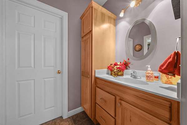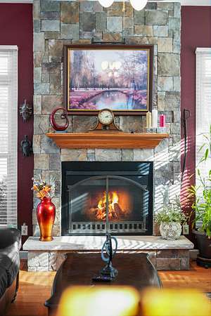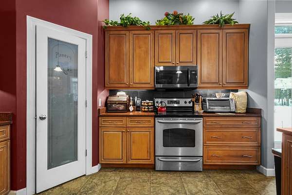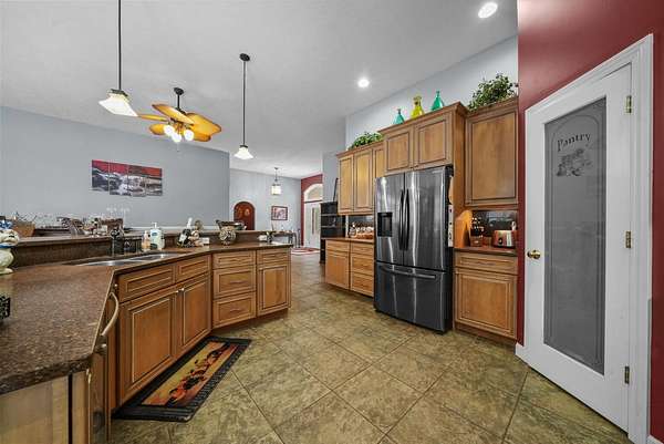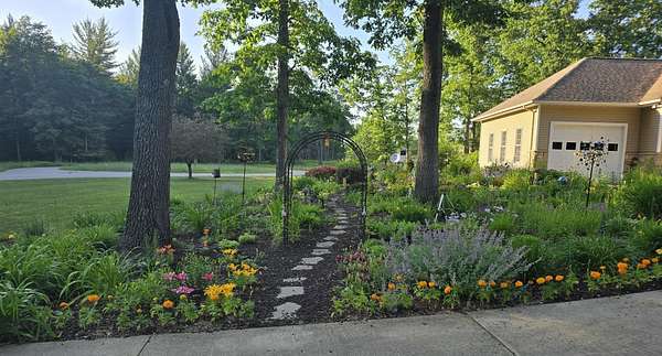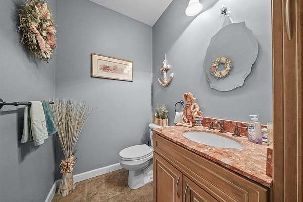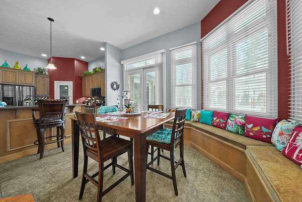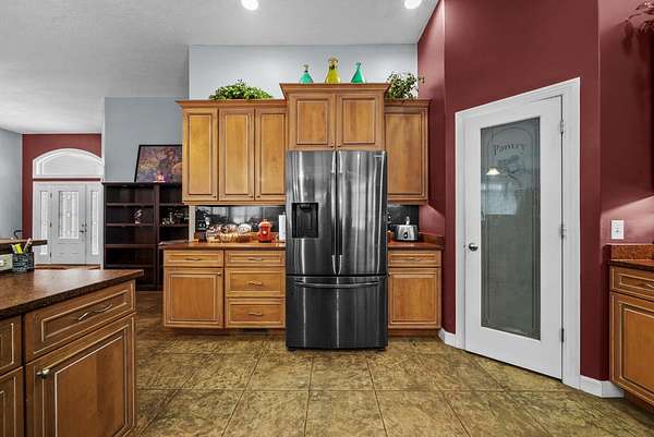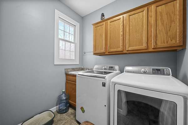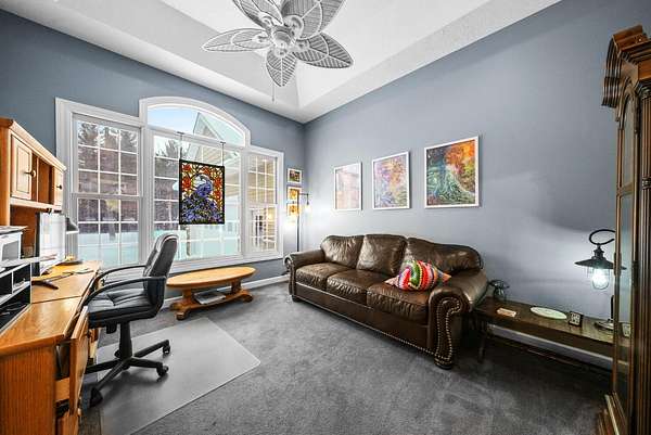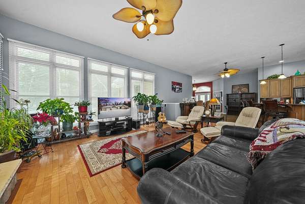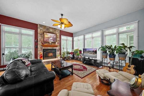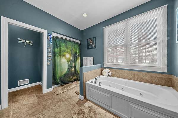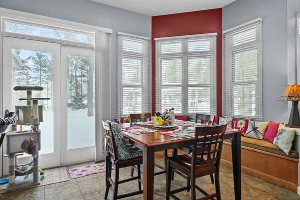 Set on five private acres this well-designed home offers a peaceful setting surrounded by nature. Large windows throughout provide abundant natural light and views of the backyard and wildlife. The split floor plan features a spacious primary suite with cove ceilings, rounded doorways, and a Jacuzzi tub. Two additional bedrooms include window seats and share a Jack-and-Jill bathroom with separate sinks and toilets. The mostly finished basement adds a large family room, full bathroom, and egress windows. Mature landscaping enhances the setting, and the three-car garage adds convenience and storage.