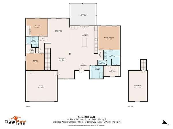 Bathroom x 2, Bedroom x 3, Bonus Room