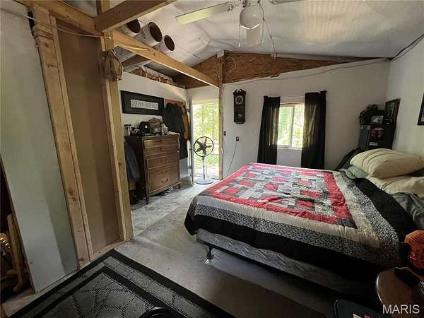 Escape the hustle and live off the land in this 1 bedroom 1 bath cabin tucked away on 17.4 wooded acres! Nestled in nature but still accessible, it offers county gravel road frontage. Never pay another electric or water bill! This self-sufficient cabin is powered by nine solar panels, rain catchment system consisting of 10-55 gal barrels for 550 gallon water capacity offering everything to live comfortably off-grid, and plenty of storage with the large shipping container. County water and electricity are available at the road if you ever wish to connect in the future. Whether you're looking for a peaceful retreat, a hunting getaway or a full time off grid lifestyle, this property is a rare find.