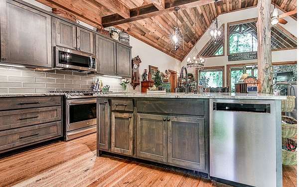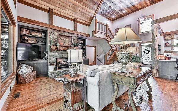 ^THE PINNACLE OF MTN. LIFE^ This 4BR, 3.5BA home features two levels + finished terrace level offering added privacy. This house offers 4,158 sq. ft. of living space + lots of outdoor living areas including huge screened in porch across back of home, large covered porch on front of home & oversized terrace level patio. Upgrades galore in this spacious open floor plan with lots of architectural design features in this custom mountain home. Primary BR/BA on main level with 2BR's/1BA upstairs & 1BR/1BA + flex bunkroom on the terrace level. Finished terrace level also features REC Rm/Den w/ mountain pub wet bar & large storage area. Nestled on double lots totaling 3.4 beautiful wooded acres offering added privacy. All paved road access, concrete driveway in a private gated community, Shepherds Ridge near lots of hiking trails, mtn. biking trails & near the Toccoa River & Lake Blue Ridge. Side fenced in yard is the perfect place for pet owners or those who have a green thumb - wait until you see these garden beds! Oversized kitchen w/ bar/island great for additional workspace & seating w/ custom cabinetry, granite countertops, stainless appliances & more.