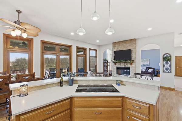 - Additional Water Heater(s), Built-In Electric Oven, Dishwasher, Disposal, Electric Cooktop, Electric Water Heater, Refrigerator, Water Softener Owned
