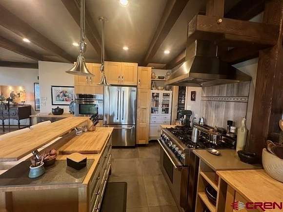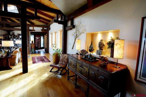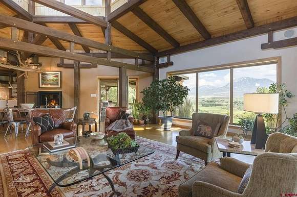 Yvon Gros, Shaffer Real Estate Company, C: 970-778-5627, gyvon50@gmail.com, www.crenmls.com: Beautiful home and rare opportunity to own 15 acres of your private sanctuary on a one-of-a-kind location on the edge of Sunshine Mesa with stunning views. The current owners developed this property with pride of ownership and care. It has everything you could need, spacious primary suite with large walk-in closet and lovely bathroom. A beautiful kitchen with high-end appliances, including professional refrigerator, six burner gas range with oven, dishwasher, wall oven a center island and a large, attached pantry. The kitchen is open to the expansive living room/dining room with well-designed large windows that bring the outside park- like setting with gorgeous mountain views right into the home. Artistic finishing details abound throughout the home. The great room is a work of art with the high blue spruce beams timber frame, clearstory skylights and hardwood floors. The private guest bedroom and bath are located on the south/west wing of the house. The spacious office or third bedroom has a gas fireplace and elevate fiber internet. On the other side of the home the one bedroom one bath guesthouse exudes rustic charm and cozy elegance. On the grounds you'll find manicure green lawns with sprinklers system, perennial flowers and herb garden. Coming from the oversized two car garage you will love to enter the house through the mud room and access the kitchen. Low maintenance metal roof. There are three lovely decks, one off the primary bedroom, second off the living room and a very private oasis on the north side. The South/West side of the property is a natural wildlife aria with a spring fed pond and has a nature trail for access. In the past it was stocked with Trout. Approximately 10 acres of fertile cropland are irrigated with gate pipes provided by 240 shares of the Fire Mountain canal delivered by underground pipes. Two taps in the Walker Springs Overflow for domestic water use are part of the property. Fives trouble free resident Lamas would love to stay in this paradise. In the fenced pasture there are 2 sheds, one for the animals. The exposure and soil would be suitable for planting vines and fruits trees. The property is in a unique enclave situated on the Western Slope between Aspen and Telluride 45 minutes from the Montrose regional airport.