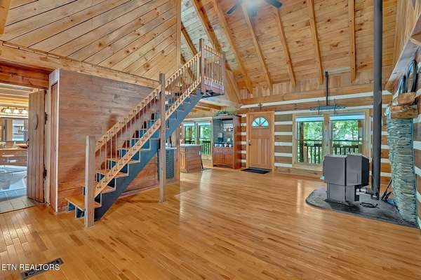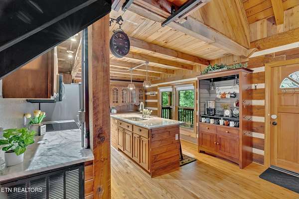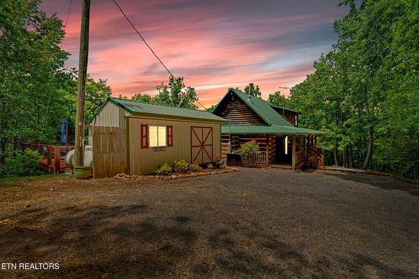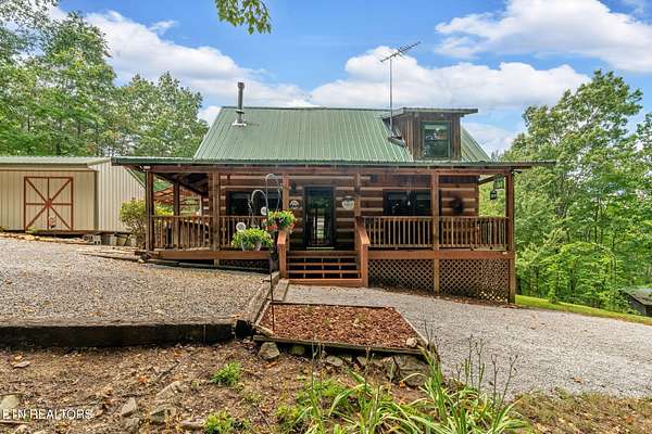 Welcome to your functional fairytale mountain hideaway on 10 Acres! Discover a storybook retreat where rustic charm meets thoughtful comfort. Set on 10 private acres, this inviting property surrounds you with natural beauty, peaceful seclusion, and timeless character. Step inside the cozy cabin featuring a main floor bedroom and a homey second-floor loft, where hardwood floors, granite countertops, stainless steel appliances, and a pellet electric stove create a warm, welcoming atmosphere. Every corner feels like a gentle escape, perfectly suited to relaxed mountain living. Outdoors, life unfolds beautifully. Sip coffee or watch wildlife from the expansive covered deck with an attached bar, soak your cares away in the hot tub under a canopy of stars, and host unforgettable gatherings in this serene setting. A charming guest mini cabin hideaway is just a few steps down the trail offering built-in bunks and a full bath that creates the perfect space for visitors or a quiet office that sparks creativity. The huge workshop/garage provides plenty of room for all your toys - from boats to 4-wheelers and more - ready for any adventure your mountain lifestyle inspires. Best of all, you'll enjoy seclusion without being remote - shopping, hospitals, and entertainment just a short drive away offering the best of both worlds. A rare find for those who long for a life that's equal parts whimsical, peaceful, and closely connected to nature. Come explore this mountain retreat and let it capture your heart.