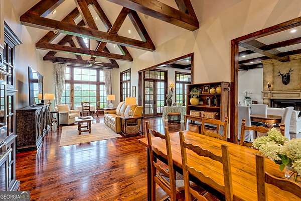 Presenting an extraordinary opportunity to own one of the region's most exclusive retreats-a legacy-worthy estate perched atop the Blue Ridge Divide, designed for discerning families seeking privacy, natural beauty, and world-class amenities. This private, gated farm offers panoramic mountain vistas from every vantage point, blending timeless elegance with exceptional craftsmanship throughout. The estate features three distinctive residences: a newly refreshed, 6,000+ sq ft main home with sophisticated modern finishes; a custom log guest house set beside a tranquil mountain stream; and an authentic antique log cabin overlooking your own boutique vineyard-ideal for hosting guests or multigenerational living. For enthusiasts and collectors, the property boasts a stunningly reconstructed antique timber-frame barn, perfect for showcasing vintage automobiles or entertaining on a grand scale. Equestrians will appreciate the horse barn, stables, and professional-grade riding ring. Additional amenities include a work barn, tractor sheds, and a mountaintop lookout tower for breathtaking sunset views. Set across 80+ acres of rolling meadows, wooded trails, creeks, stocked fish ponds, and ATV paths, this estate offers boundless recreation and adventure, all within a peaceful, secure sanctuary. Located moments from Clayton, Rabun Gap, and Lake Burton, and just two miles from Heaven's Landing-a renowned fly-in community with a mile-long concrete airstrip and private hangars-this property ensures seamless access for those who travel by private aircraft. Discover the ultimate legacy estate where every detail is designed for luxurious, effortless living. Video tour available upon request.