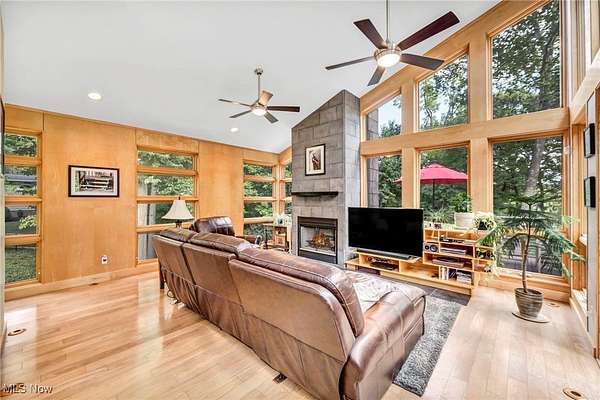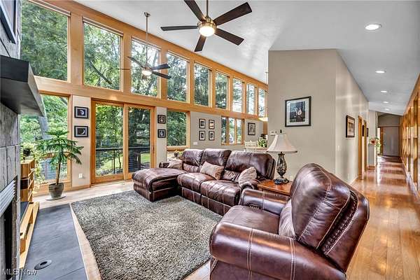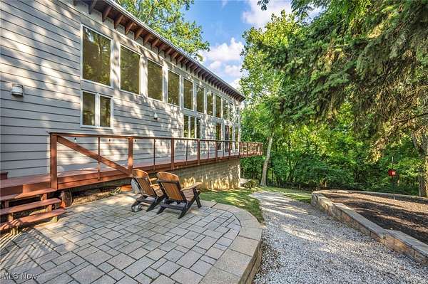 FULLY INSPECTED & New Price! ~ Where architecture and nature exist in perfect harmony. RARE 1.67-acre private retreat overlooks scenic Gully Brook Preserve. Sweeping panoramic views by day give way to sparkling night skies perfect for stargazing. Multiple outdoor spaces invite year-round enjoyment-an elevated cantilevered deck with fireplace, a private deck off the owner's suite, a covered patio, and a welcoming firepit area and a fully fenced yard. Every detail was crafted to celebrate each season. From first approach, striking elevation, professional landscaping, and artfully designed hardscapes set the tone for the home's unique character. Ample parking ensures effortless hosting for gatherings both large and small. Inside, a dramatic slate accent wall and soaring floor-to-ceiling windows frame the surrounding landscape. Rich hardwood floors, natural wood elements, and vaulted ceilings give warmth and depth to every space. The layout blends open gathering areas with well-placed private retreats. In the kitchen, custom cabinetry, premium finishes, and abundant natural light create an inviting space. A spacious island with seating, a dining area, and a cozy breakfast nook offer flexibility for everyday living or entertaining. The living room draws attention with built-ins, vaulted ceilings, fireplace, and seamless access to the deck and side porch. A powder room, walk-in pantry, and mudroom complete this main living area. The bedroom wing includes an exceptional owner's suite, a distinctive den/office, and a conveniently located first-floor laundry. Downstairs, the full walk-out lower level with 15 course height awaits your transformation. Add daylight windows and a slider to access the patio~ finish the bath......a perfect space for a future media room, speakeasy, or recreation space. This property stands as a one-of-a-kind retreat designed for beauty, comfort, and connection to nature. Viewings by appointment only.