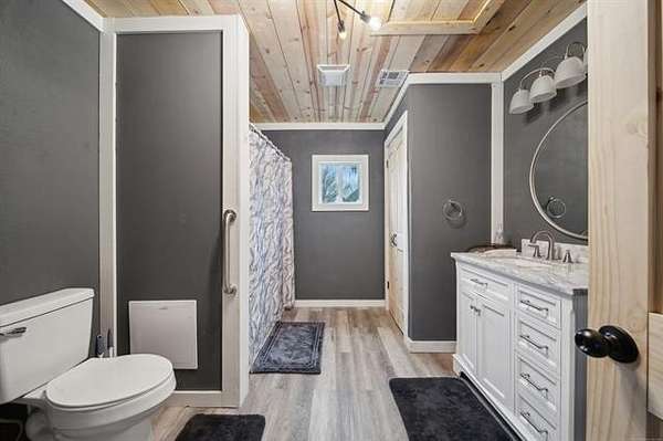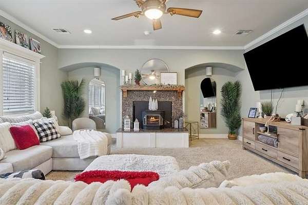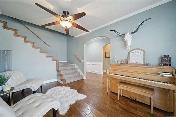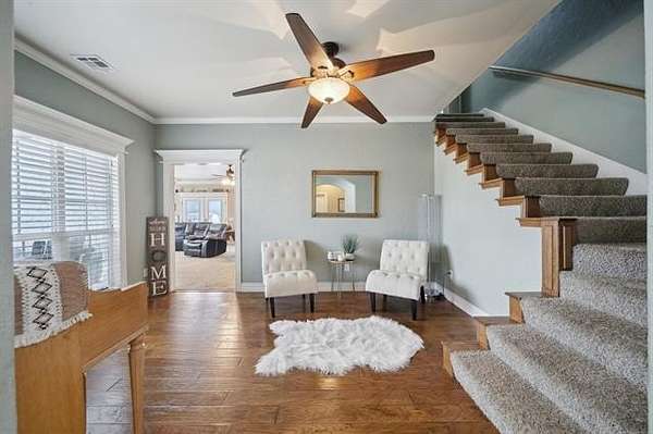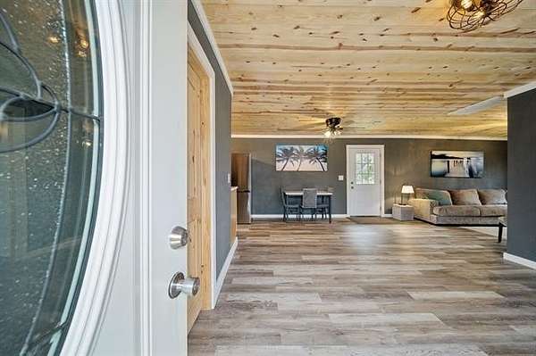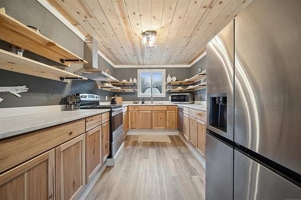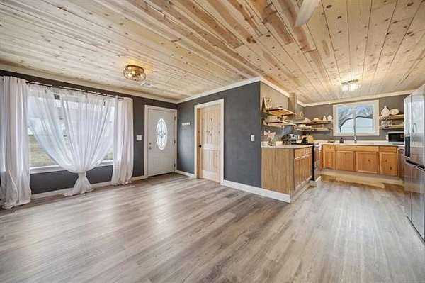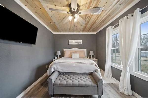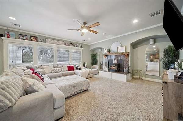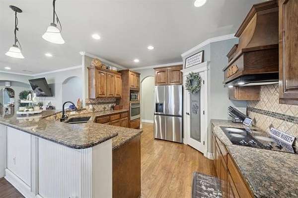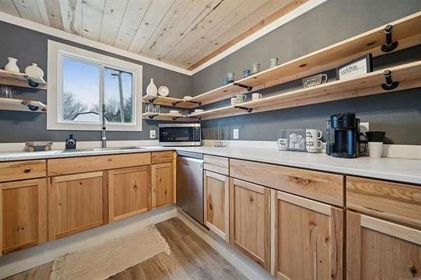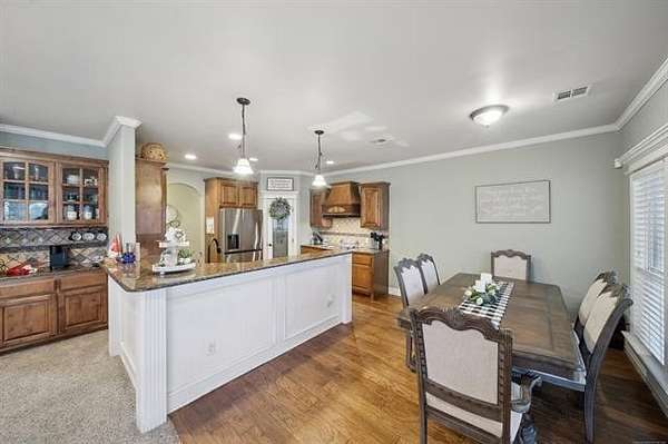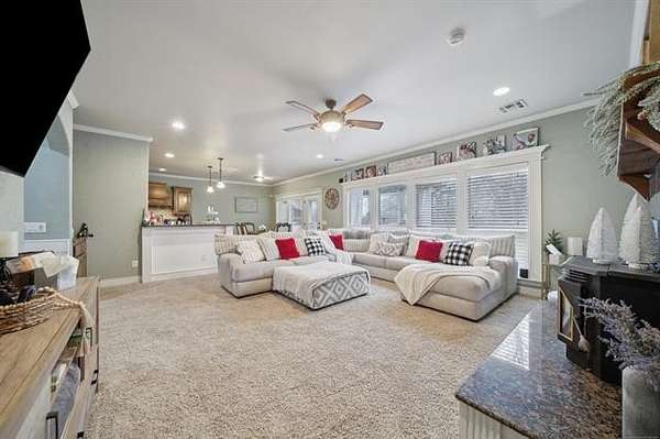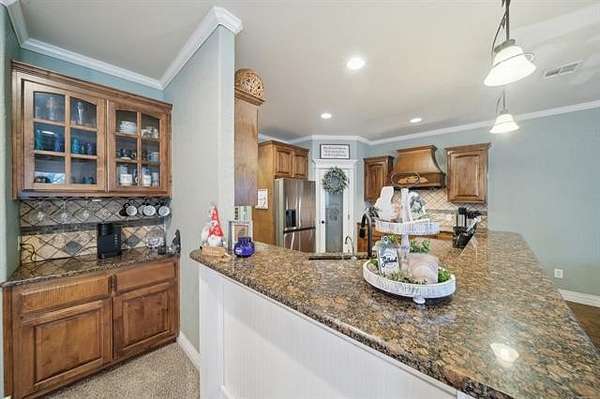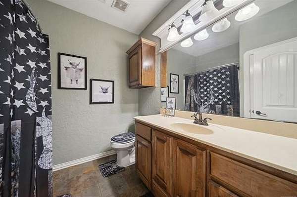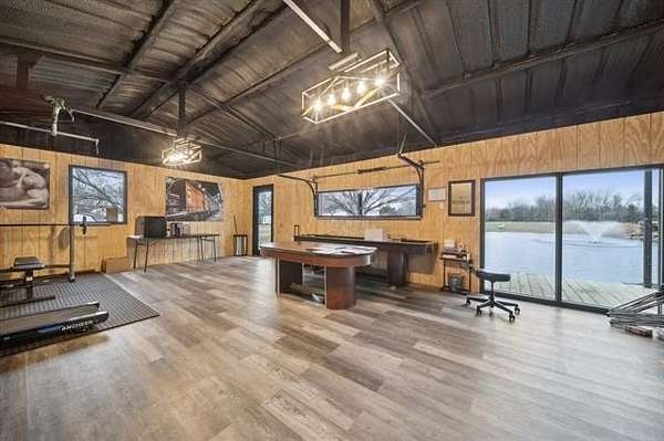 This gorgeous 3,453 sq ft (per courthouse) home sits on 5 acres, has 4 bedrooms, 2 baths, detached 3 car/shop, 2 living areas and a theater room. The home has beautiful wood floors and crown molding throughout. 3 bedrooms, including massive master en-suite, all w/ walk-in closets, are located downstairs. The master suite has a whirlpool tub with separate shower and double sinks. The theater room & 4th bedroom are located upstairs. 4th bedroom would also make a great office. The theater room is plumbed for a sink & has a space for a refrigerator. The kitchen has granite counter tops with beautiful cabinetry, and a walk-in pantry. The home has a wood burning fireplace with a pellet stove installed in front so you can choose which you prefer. Enjoy a large covered back deck off of the dining area. The home has 3 HVAC units, 2 septic systems on the property, 2 separate electric meters & 2 internet connections. Added since 2023: 25 X 35 1 bedroom guest house w/full kitchen & bath, & separate fenced yard. All appliances remain in the guest house including the refrigerator, stack unit washer & dryer. 3 car detached/30 X 50 Shop with 3 EOHD. 10 x 20 above ground storm shelter has 8" thick walls, electric & heat/air. Currently being used as an office, gym & game room, the 20 X 30 building has spray foam insulation w/attached dock, on the pond. There are so many possibilities for business or entertaining. The 13-15' deep pond w/waterfall is stocked with bass, catfish & blue gill perch. Well house w/well dug to the aquifer was used to fill the pond. Basketball court/Pickleball court. Electric gate. Shed. Property could be multi-family property or an income producing opportunity. Home is less than 5 miles to Lake Keystone and approximately 30 min to Tulsa with easy access to Hwy 412 & Hwy 51.
