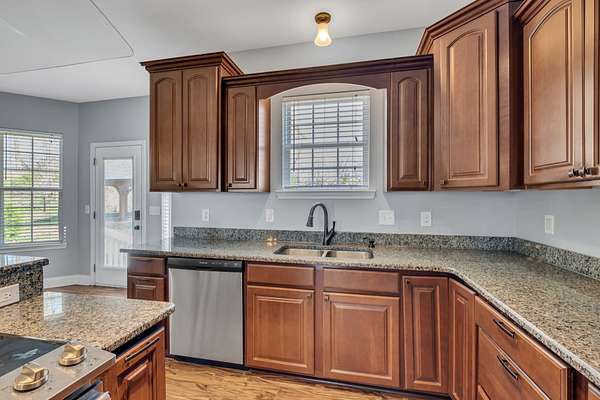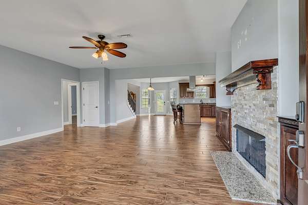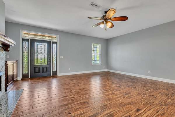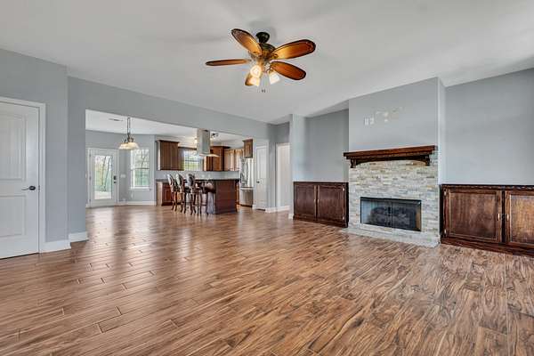 Beautiful Country Home on 15.990 Acres - Perfect for Large Families and Outdoor Living. This stunning 3-bedroom plus office, craft room, exercise room and 3 1/2 -bath home is the ideal retreat for large family gatherings and embracing the tranquility of country living. Step inside to a warm and inviting open-concept floor plan. The spacious living room boasts a striking stone fireplace complemented by finely crafted custom cabinetry, creating a cozy yet elegant atmosphere. The gorgeous kitchen is a chef's dream, featuring granite countertops and SS appliances that blend style with functionality. The expansive primary suite serves as a private sanctuary, complete with an end-suite bath showcasing dual vanities, a walk-in shower, and a custom closet with built-in shelving for ample storage. From the porch, soak in breathtaking views of nature, making every moment feel like a peaceful escape. This home is packed with thoughtful upgrades, including a wet bar in the bonus room, a private pavilion, a large dog run, and mature fruit trees. Sports enthusiasts will appreciate the soccer pitch, while hobbyists and entrepreneurs will love the huge, detached shop building-perfect for storing tools, equipment, or multiple vehicles. According to the local surveyor, there's even potential to build a separate living space on the property. With your own large acreage and unmatched privacy, the possibilities for outdoor enjoyment and personal projects are endless. This exceptional home is truly a must-see for anyone seeking the perfect blend of comfort, space, and country charm.