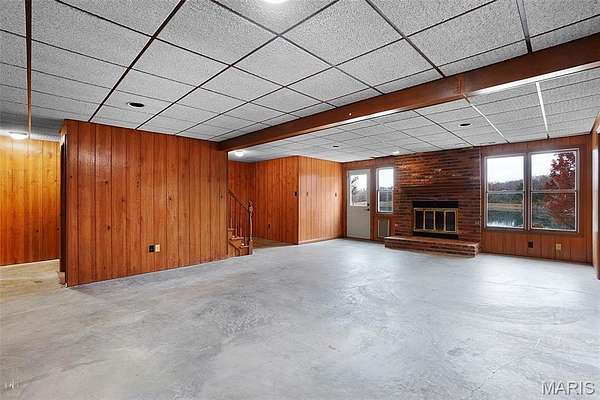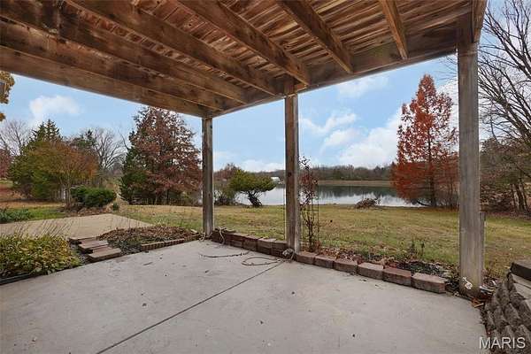 The finished walkout lower level served by dual staircases features additional entertaining space with a brick wood-burning fireplace with raised hearth, 2 additional bedrooms, a full bath, a dedicated office, built in book cases and plenty of storage. Walk right out to a beautiful view overlooking approximately 5 ac lake shared with one other property owner. Outside you'll find an attached 2 car garage, plus a shed with 3 garage bays and a lean-to---ideal for equipment, hobbies or extra parking.