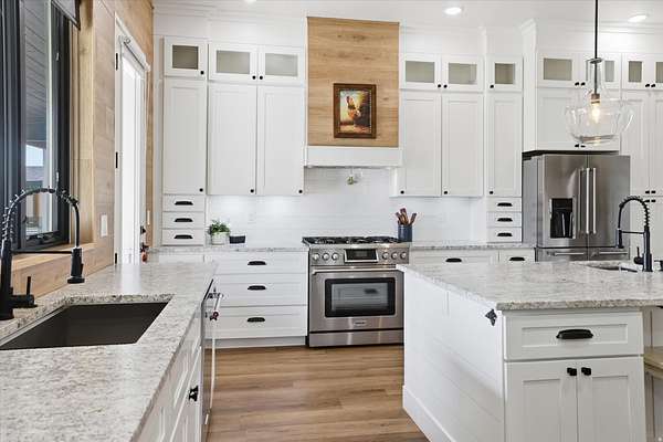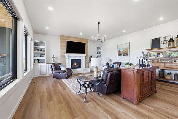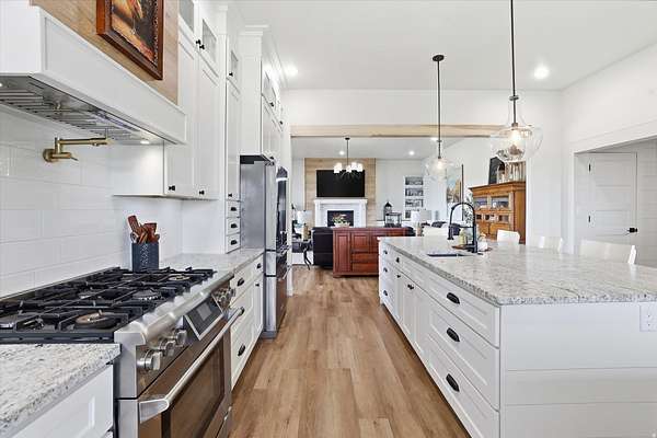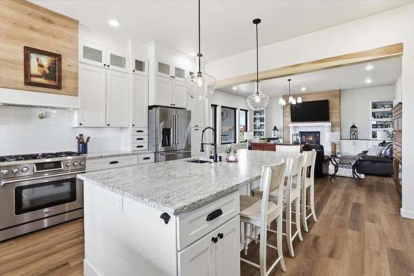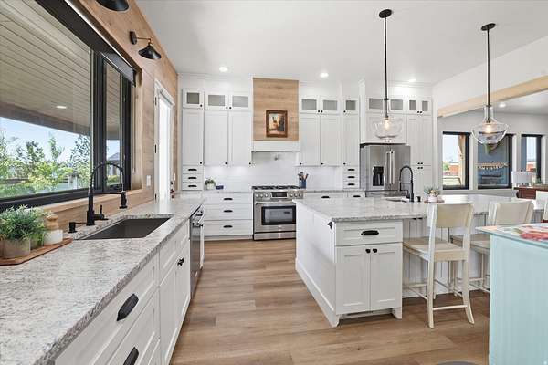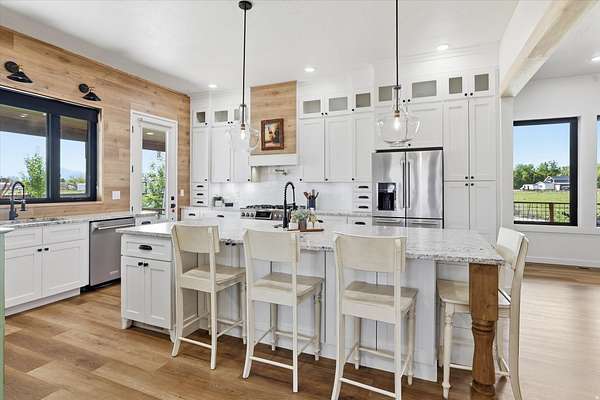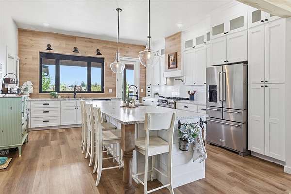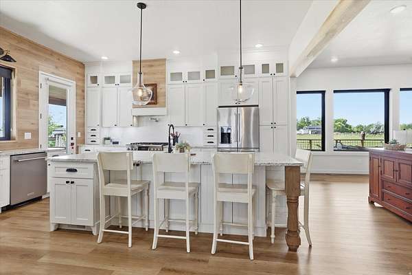 This high end, AMAZING remodel & addition was completed the end of 2024! Your excitement will grow as you begin to tour the home and property. There are so many WOW factors, it is hard to know which one will be your favorite. Will it be the 43x30 attached garage, or the gorgeous kitchen with 36' range along the high end interior finishes linked to a butler panty plumbed for 3rd sink, or the 6 total fireplaces that each create an offering of warmth, comfort & serene outdoor living spaces (4 indoor & 2 outdoor). Perhaps it could be the 4.62 acres that provide amazing mountain views and open landscape, along w'3 water shares that provide the irrigation to sustain the property and desired animals. Not to mention the possibility of business ventures, or just space to breathe. Subdividing into multiple lots is also a potential option, Seller has already drawn up a 3 lot plan & had it surveyed (if interested, Buyer to verify with city for details). The layout of the home also provides options for a MIL apartment/generational living. The Barn is 38x38 with power and water and new 9.9x12 quiet garage door, w'lean to off to the side perfect for the boat or RV. Carport shed is 25x20 w'closed in area and rollup door. Also a 8x14 Shed w'power. 2 separate a/c&furnace systems (front 2017 & addition 2024 Daikin Fit system) Upgrades include Anderson Renewal windows, New Septic System, Smart tankless water heater, Smart sprinklers in fenced in area & front yard, Encapsulated crawl space, upgraded power panel & meter (a Conduit runs along east boarder for additional power option to barn, etc.). This is truly a luxurious farmhouse that captures desired views, peace and quiet while still providing the convenience of nearby city amenities.