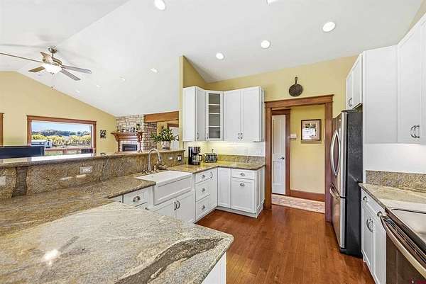Shoshanah Beck, Shaffer Real Estate Company, C: 970-640-1575, shoshanah@westernslopelife.com, www.crenmls.com: This lovely 3-bedroom, 2-bath Craftsman-style home in the desirable Midway neighborhood just East of Hotchkiss combines timeless design with modern comfort. Inside, you'll find beautiful oak hardwood floors, granite countertops, and abundant natural light throughout. The open living area features a cozy gas fireplace and custom built-ins, while the formal dining room and living room frames sweeping views of the West Elks and Raggeds Wilderness. Spend time outside and enjoy the beautiful wraparound, landscaped yard maintained by the irrigation fed sprinkler system. The home is efficiently equipped with geothermal heating and cooling for year-round comfort. Upstairs, a 600-square-foot bonus space offers endless possibilities--home office, studio, or additional living area. The spacious primary suite includes ample closet space and a serene atmosphere for relaxation.Set on 5 acres--3 of which are productive hay ground--with shares of Shepherd-Wilmott Ditch water, the property also features a barn with a shop and a 940-square-foot, 1-bedroom, 1-bath apartment, ideal for guests, extended family, or rental income. Enjoy the perfect balance of craftsmanship, functionality, and Colorado beauty in a peaceful country setting just minutes from Hotchkiss.