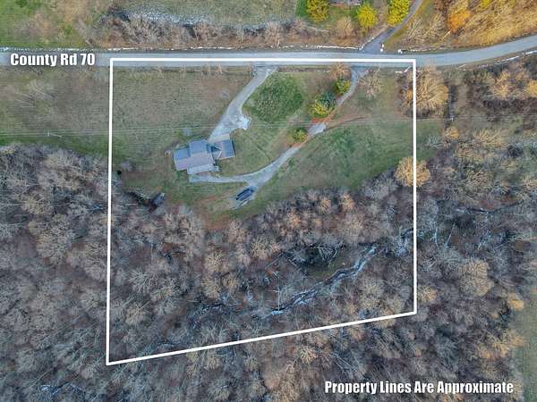 Two storage barns are in place, each with electric service and a frost-free water hydrant. It's an easy walk into the woods and down to the small seasonal creek that flows through the property. Any mineral rights owned by the sellers will convey. Located close to US-16 and State Route 60.
