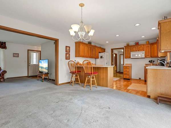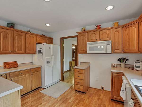 Downstairs, the full walk-out basement is partially finished with a full bath and provides additional space that could be finished out to suit your needs. The 2-car garage is separated from the home by a covered breezeway and offers plenty of space for parking, additional storage, or a workshop.