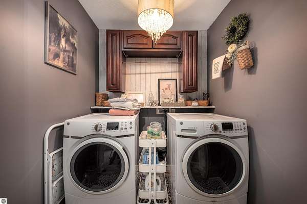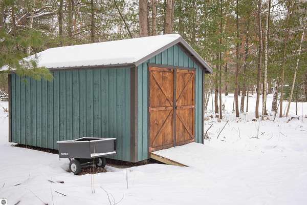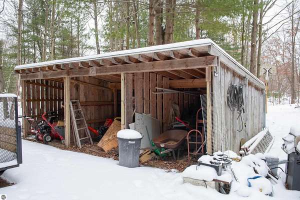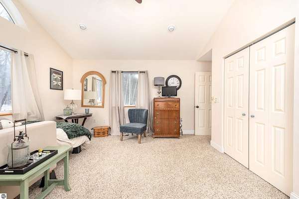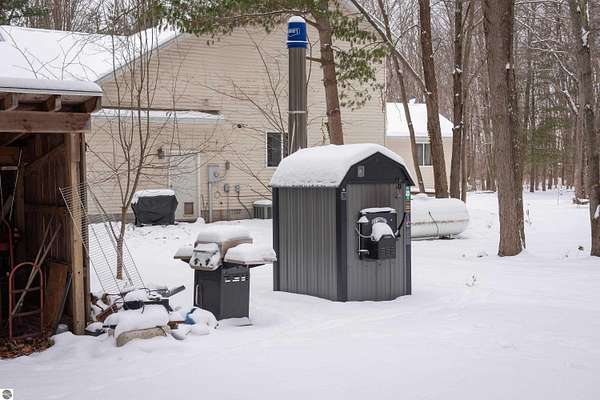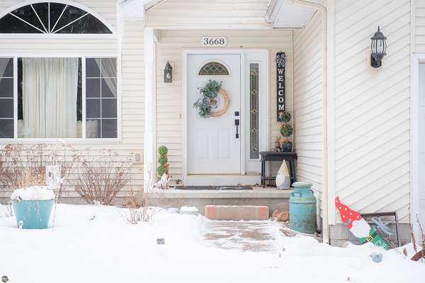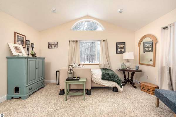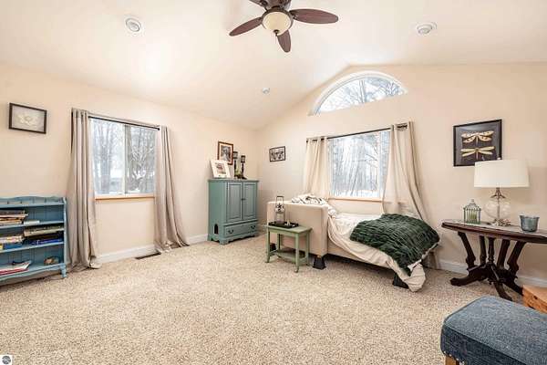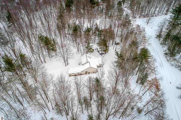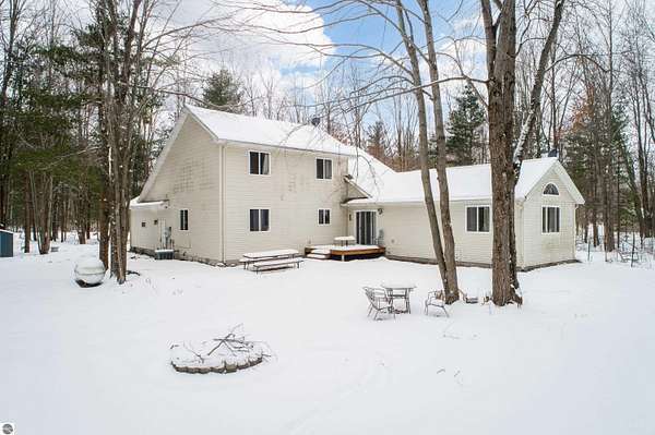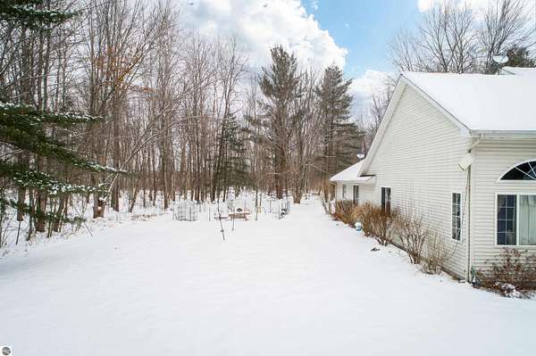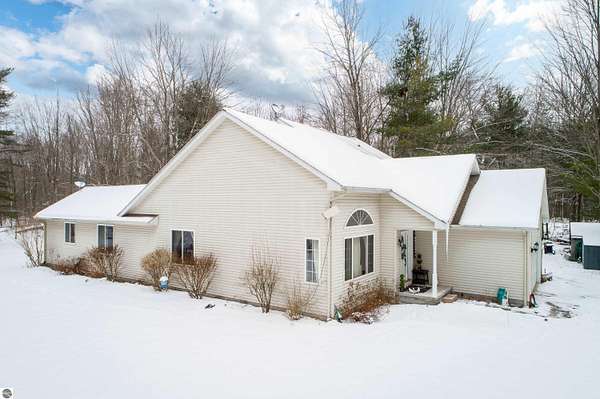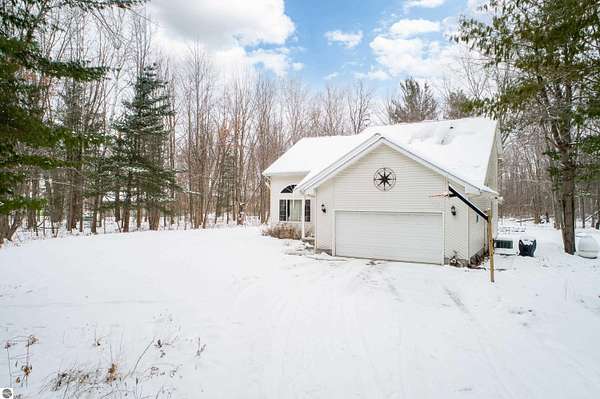Escape to privacy & comfort in this beautiful contemporary home set on 1.7 wooded acres in a highly desirable neighborhood. Offering a peaceful, secluded feel, this property is centrally located between Midland, Mt. Pleasant & Clare, just minutes from US-10--ideal for buyers who want a rural setting with quick, convenient commutes. The home features 4 generously sized bedrooms (2 main floor bedrooms) & large, open living spaces filled with natural light. A stunning vaulted ceiling in the living room creates an impressive first impression the moment you step inside. Pride of ownership shows throughout with recent updates including a remodeled upstairs bath & laundry, new flooring & paint in select areas, plus updated light fixtures & ceiling fans. Enjoy energy efficiency with an outdoor wood furnace system capable of heating the entire home--helping reduce utility costs. The backyard offers a true park-like setting, beautifully landscaped with a bonfire area, garden with dedicated water hookup, & multiple outbuildings to meet all your storage or hobby needs. This property blends space, privacy & convenience in a sought-after location--perfect for buyers seeking a serene lifestyle without sacrificing accessibility. A rare opportunity you won't want to miss!